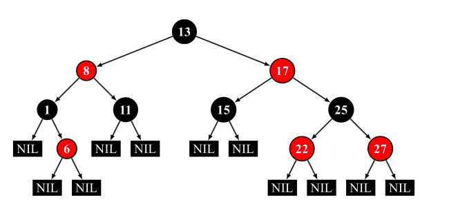 - 无连续红色节点:红色节点的子节点为黑色节点(即相邻的两个节点不可能同时为红色)