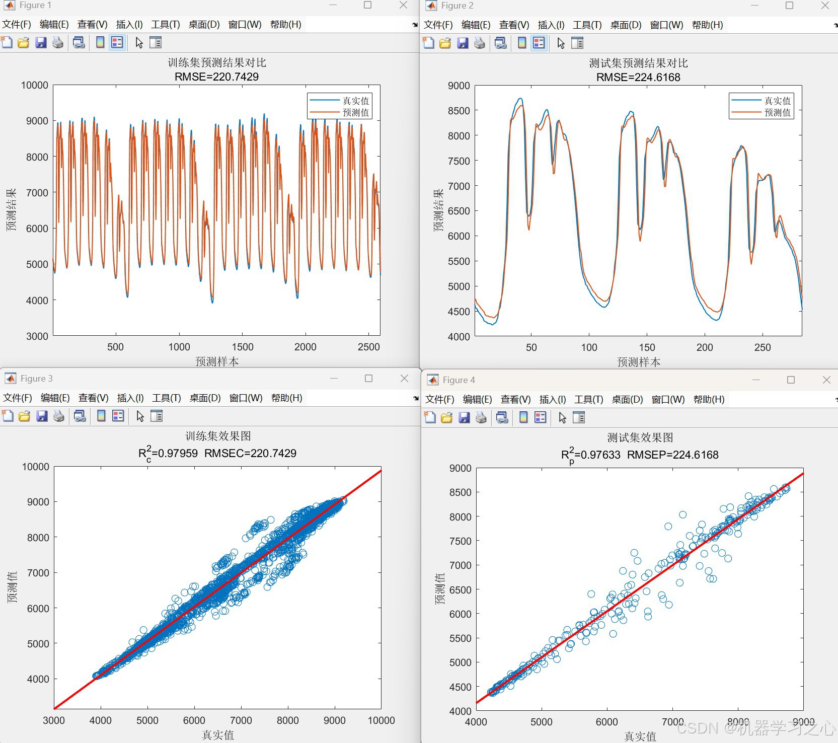 - 评估与可视化:计算RMSE、R²、MAE、MAPE等指标,绘制预测对比图与拟合图。