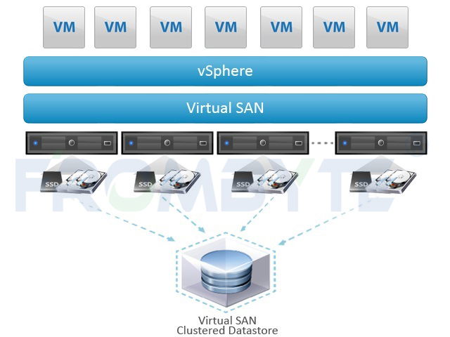 VSAN 是基于 vSphere 内核开发的可扩展分布式存储架构,在 vSphere 集群主机中安装硬盘与闪存构建存储层,经管理控制形成共享存储层。