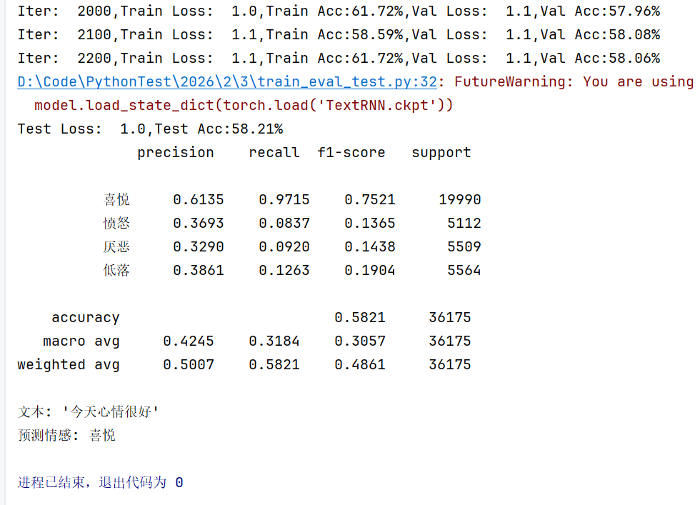 torch.save(model.state_dict(), 'TextRNN.ckpt')