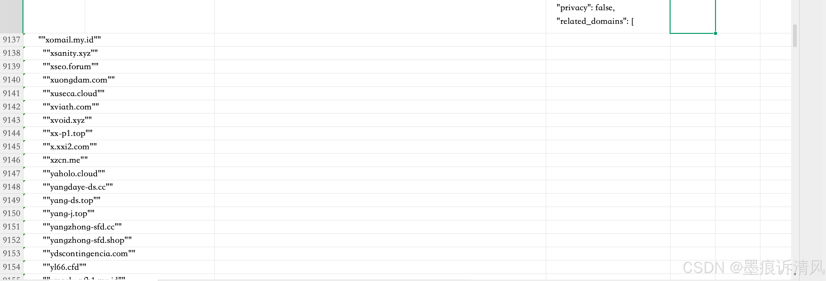 处理CSV文件,获取C列(domain)和E列(valid)的值