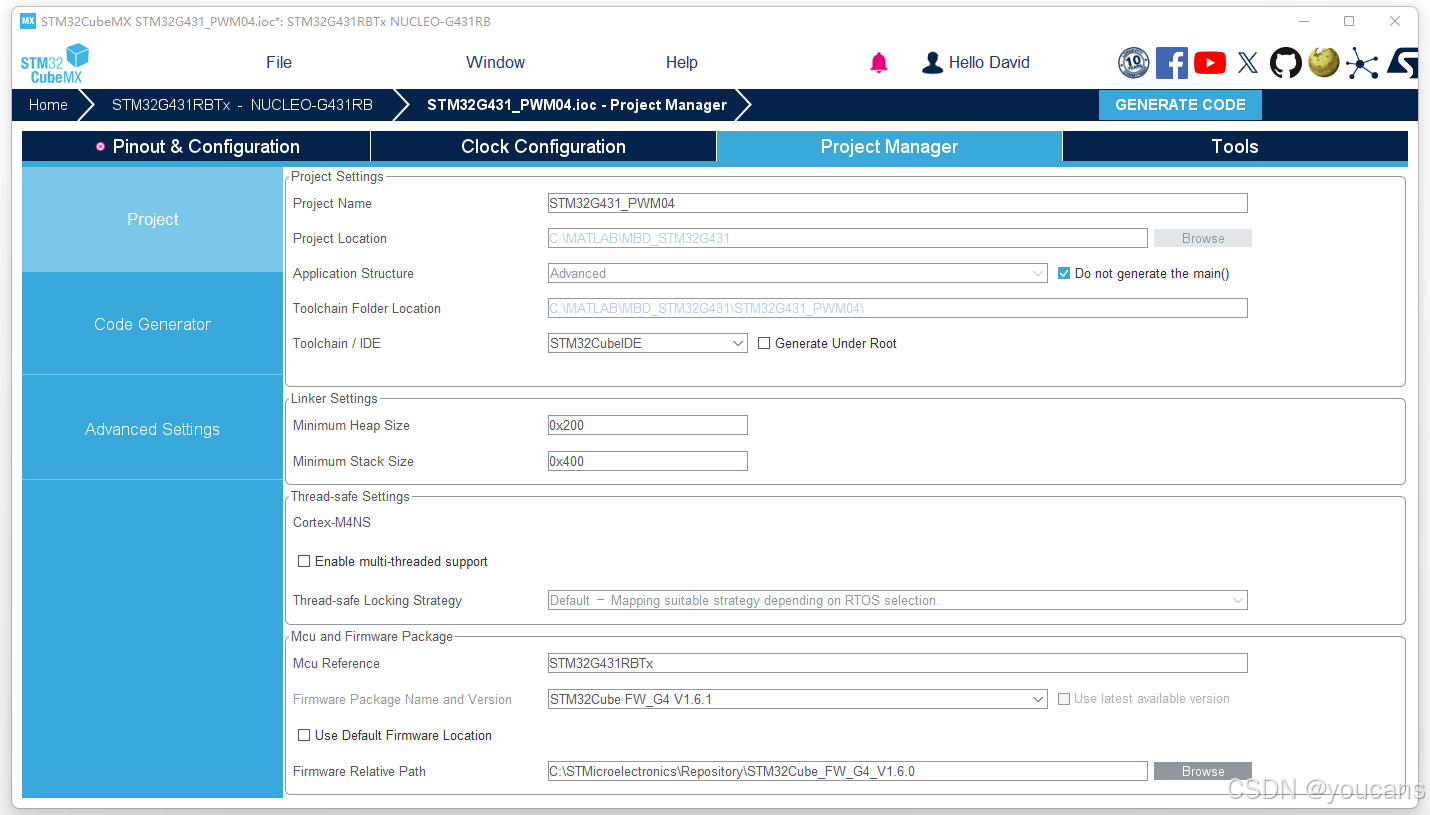 将工程保存为 STM32G431_PWM04.ioc