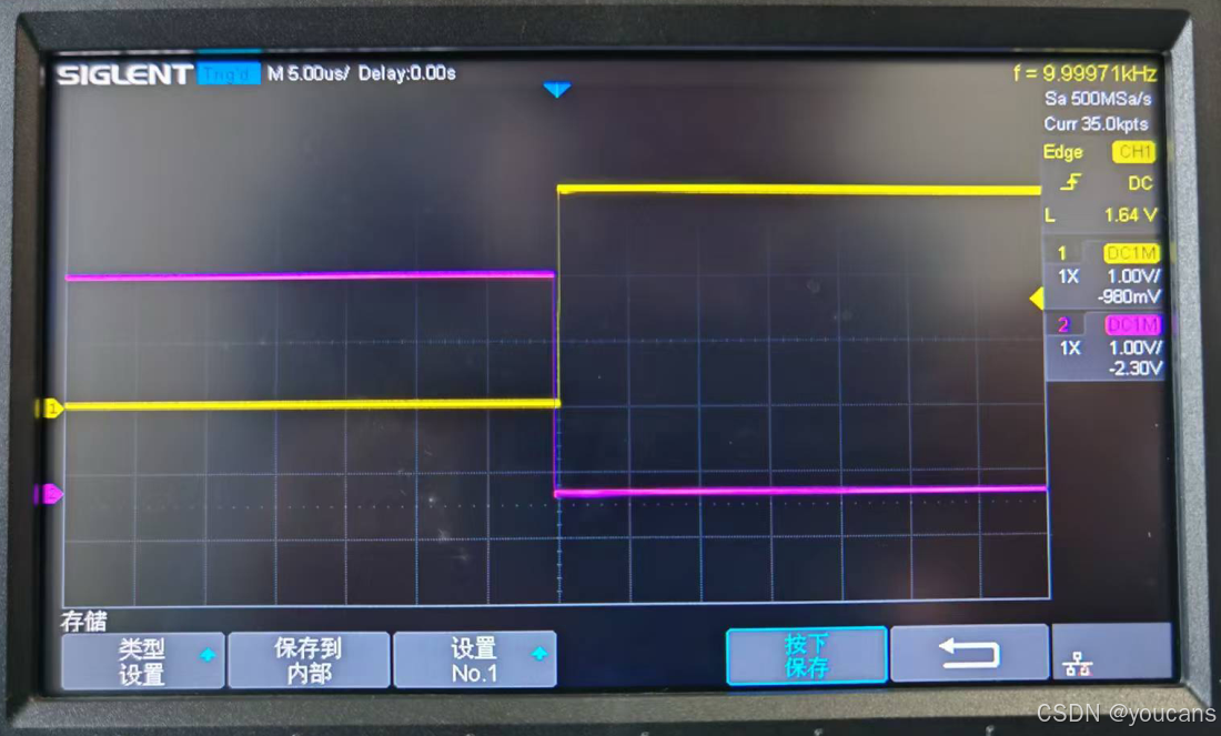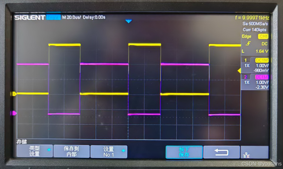 - 使用示波器观察输出信号如下: