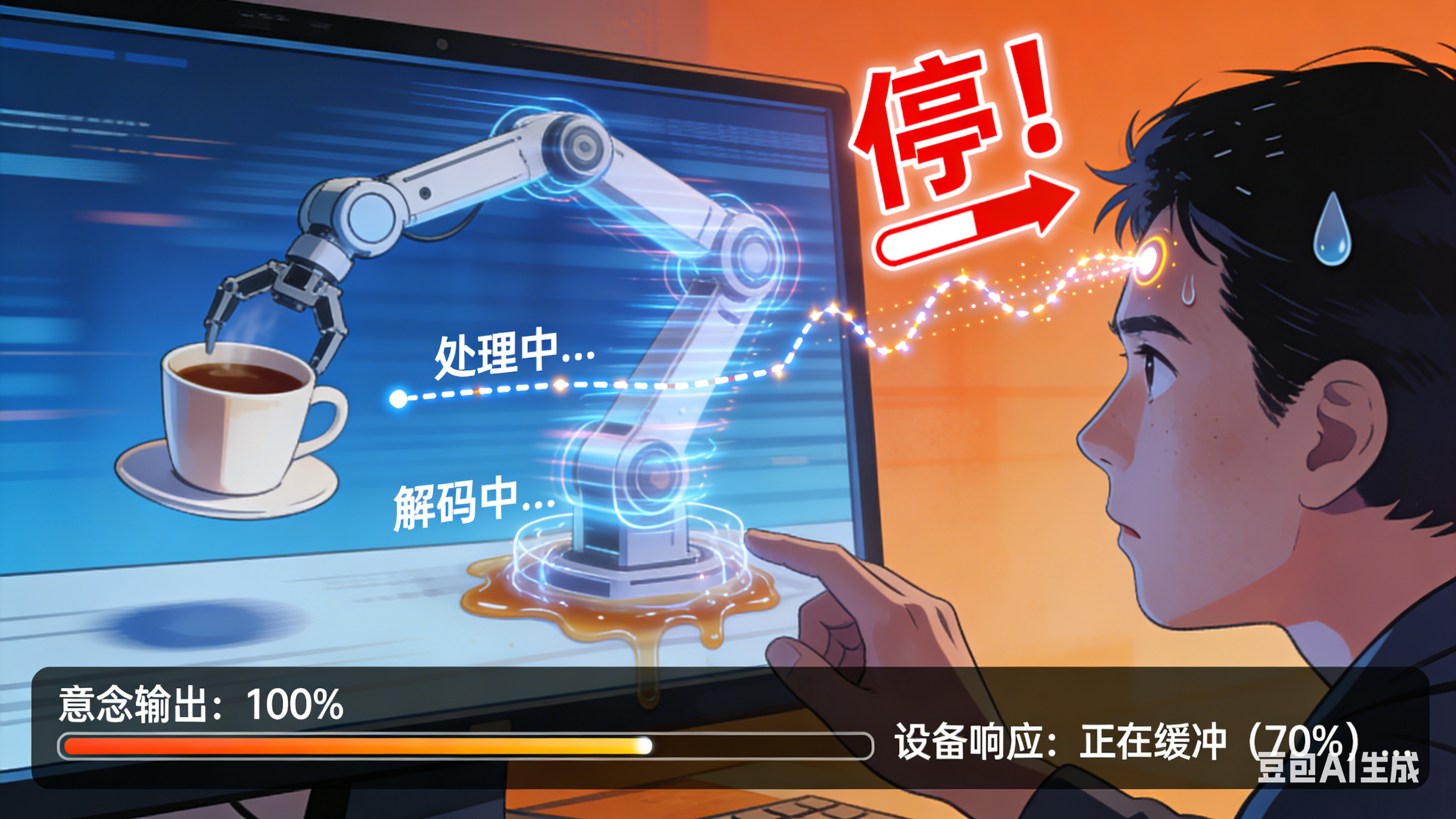 就算系统连蒙带猜 ,总算读出了"往右"的意图,把它变成光标或机械臂的动作时,新麻烦又来了。首先是慢 :从采集、处理、解码到执行,几百毫秒 的延迟是家常便饭。你念头都飞到下一步 了,屏幕上的光标还在上一步磨蹭 ,感觉像是在用高延迟的远程桌面操作。