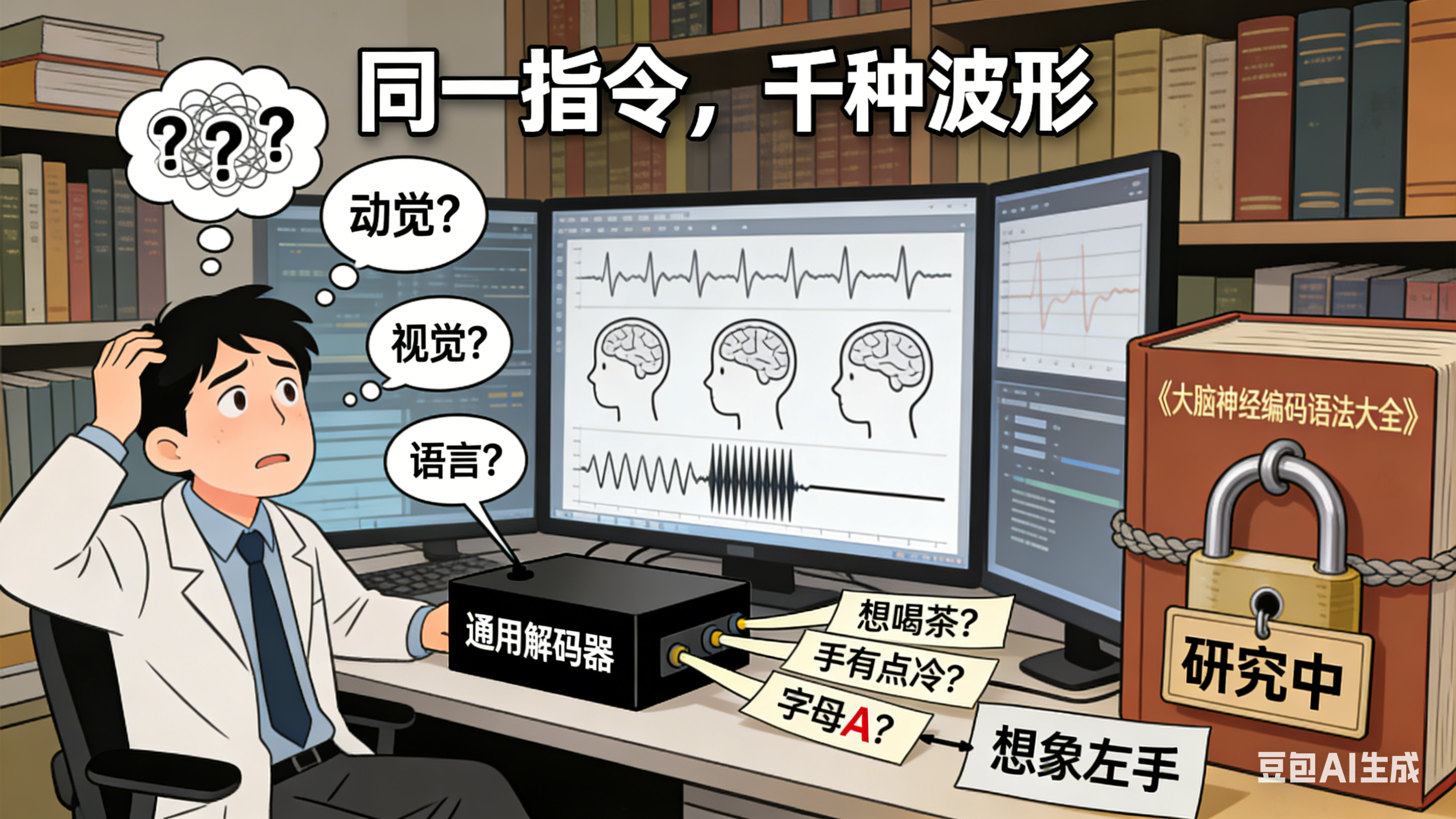 我们现在干的,就像是收集了成千上万封用各种陌生方言 写的电报。我们既不懂这门方言的语法 ,也不认识那些词。 所以训练出的解码模型特别"认生"和"教条 ":在实验室里,对着训练好的"模范发报员",它百发百中;可一旦换个人 ,或者"发报员"今天嗓子不舒服(状态不好),模型立刻抓瞎 ,开始胡猜。要想真正"读懂",恐怕得等神经科学把大脑那本厚厚的"方言密码本"多破译几章才行。