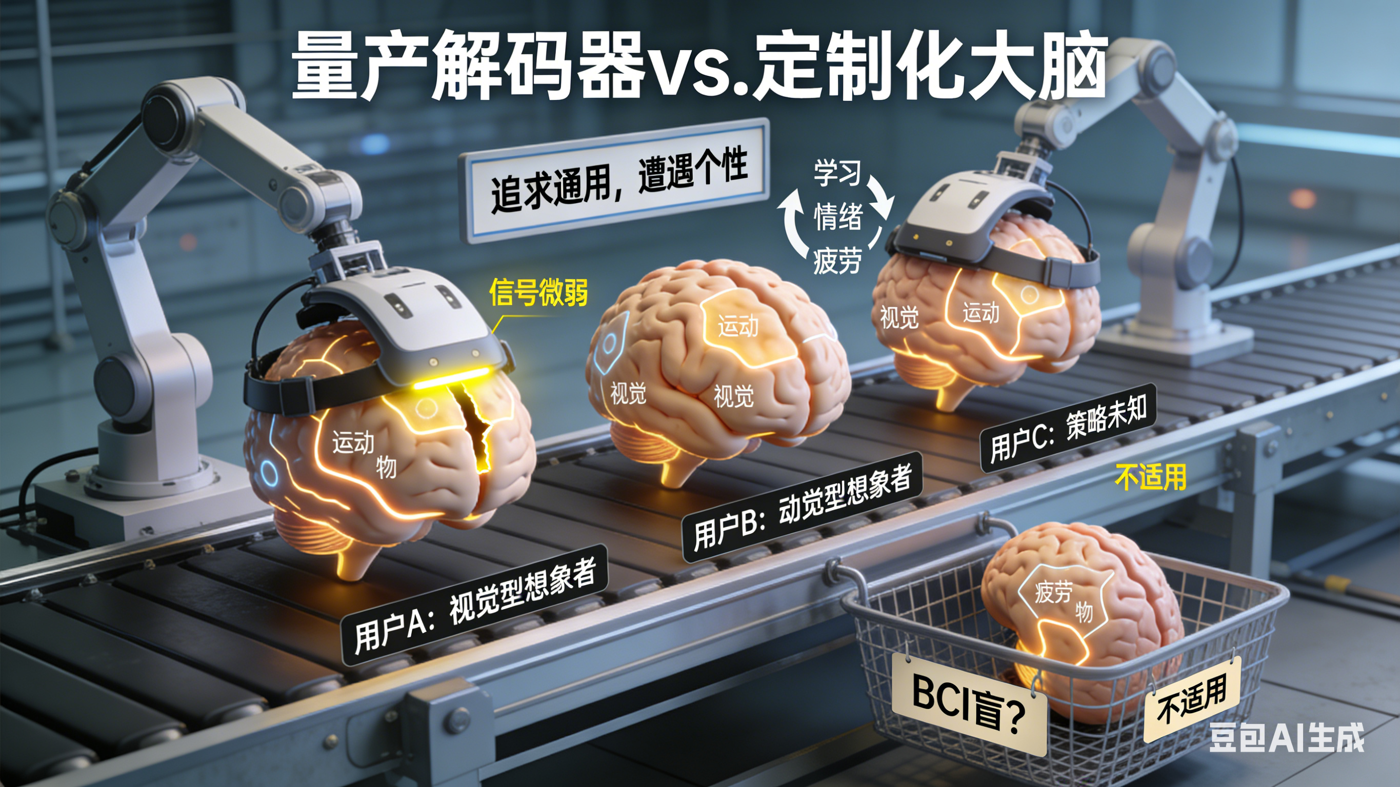 困境是环环相扣 的:信号采得糊,解码就看不懂;解码看不懂,控制就不准;控制不准,交互体验就生硬;而千变万化的大脑"方言" ,让所有环节的问题都得用个性化的方式去解决。