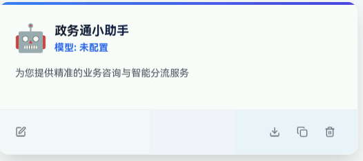 - 填写基本信息:名称(如"政务通小助手")、描述(例如:"为您提供精准的业务咨询与智能分流服务")、选择政务风格的头像等。