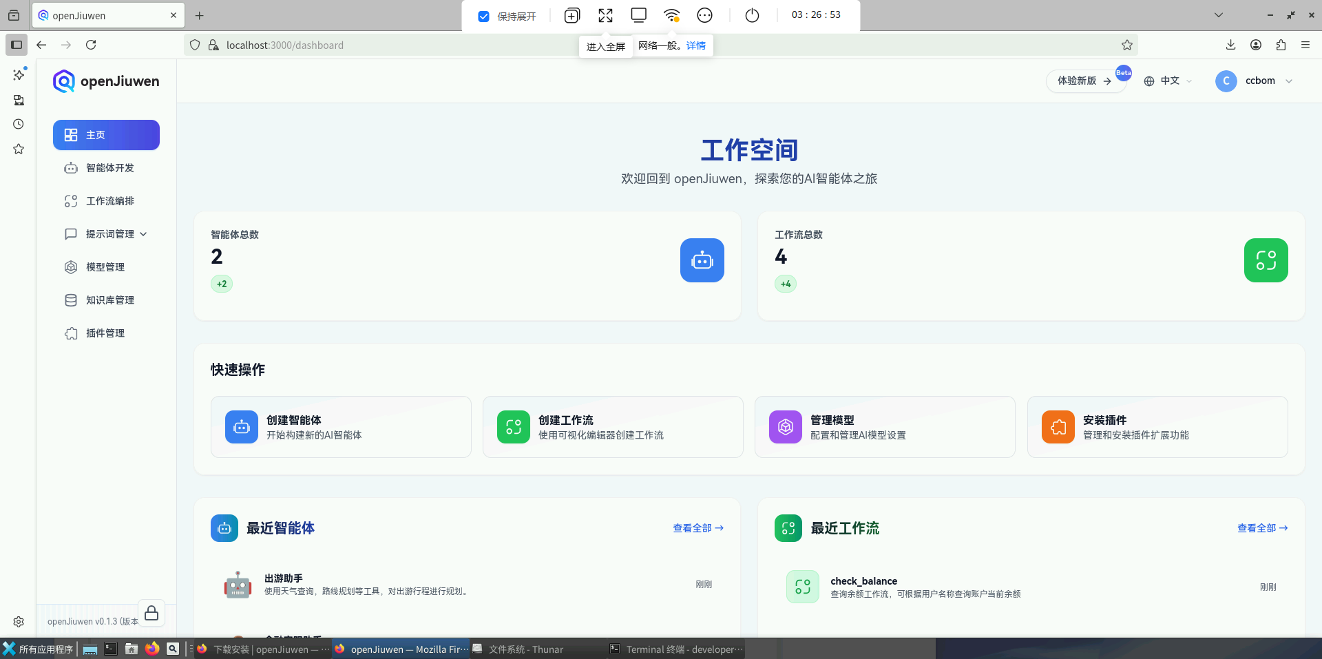 - 下载平台 :访问 openJiuwen 下载页面,获取最新的部署包v0.1.3版本。
