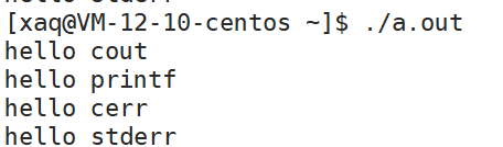 前两句话是向标准输出里打印,后两句话是向标准错误里打印,但其实都是向标准输出里打印,使用引用计数而已