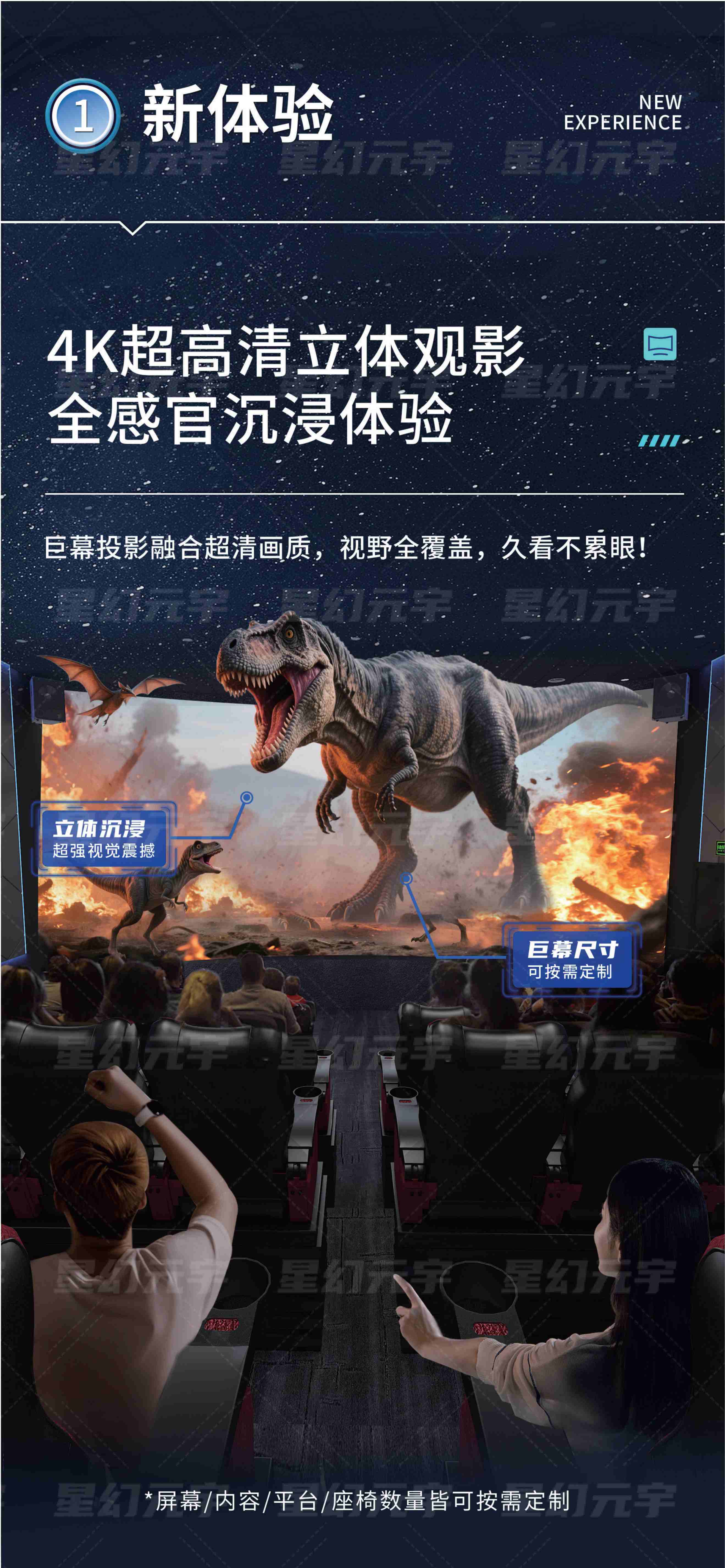 立体视觉冲击:采用偏振式或快门式3D投影技术,使画面更具深度,场景逼真。
