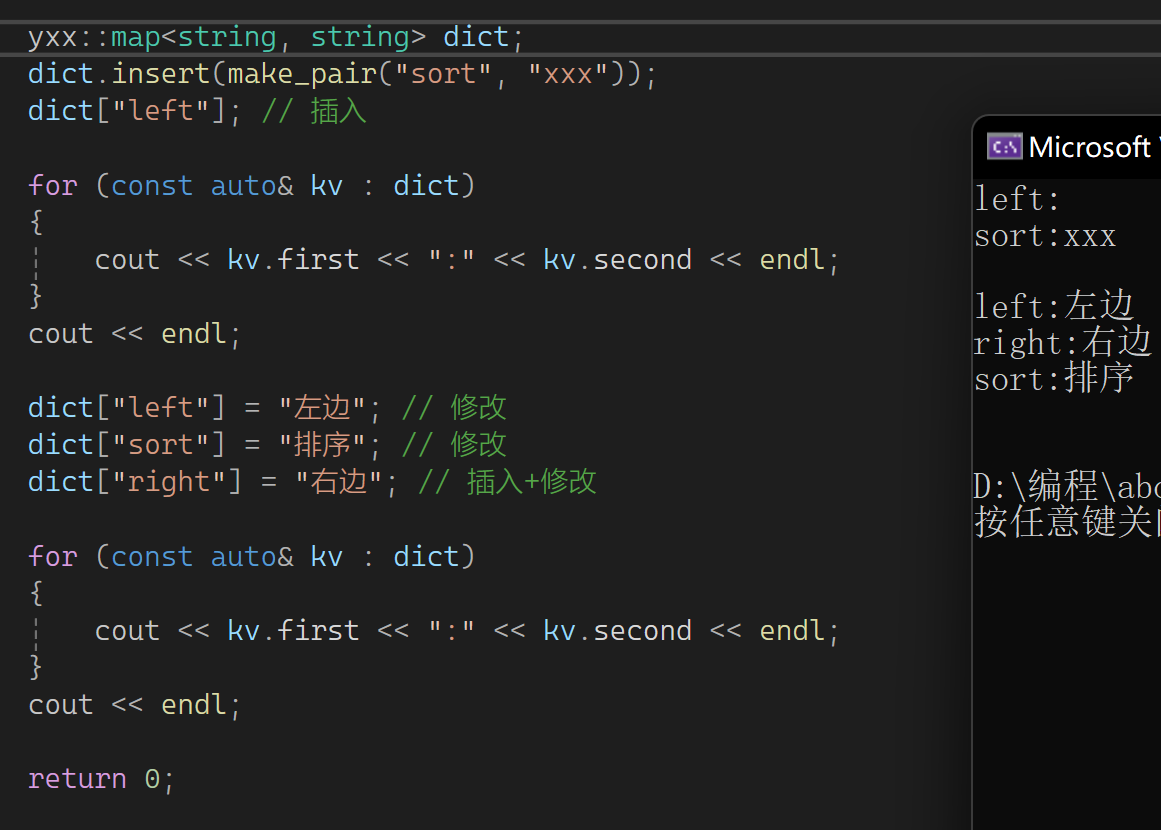 下面来解决一下map,要做到不能修改key,可以修改val: