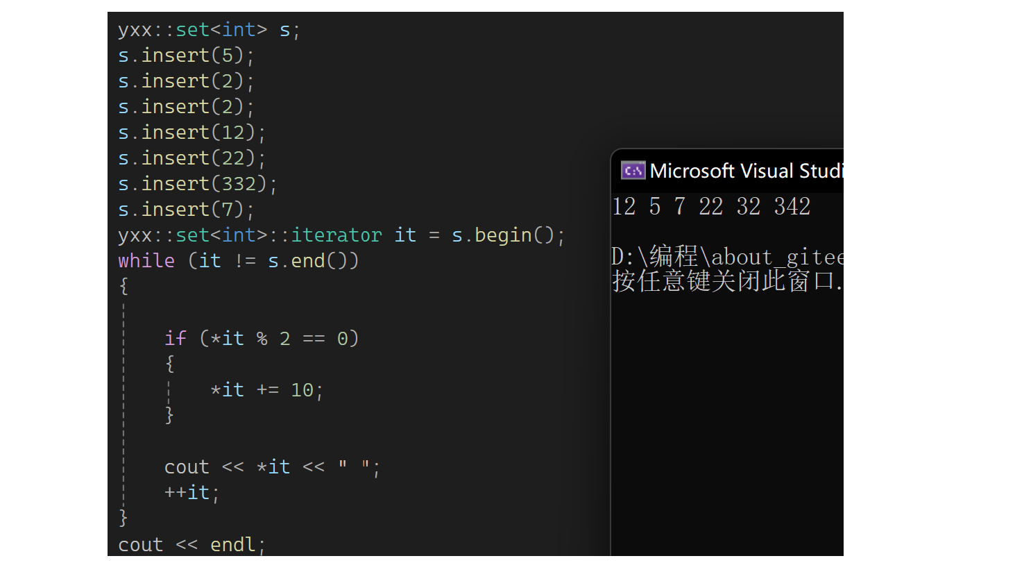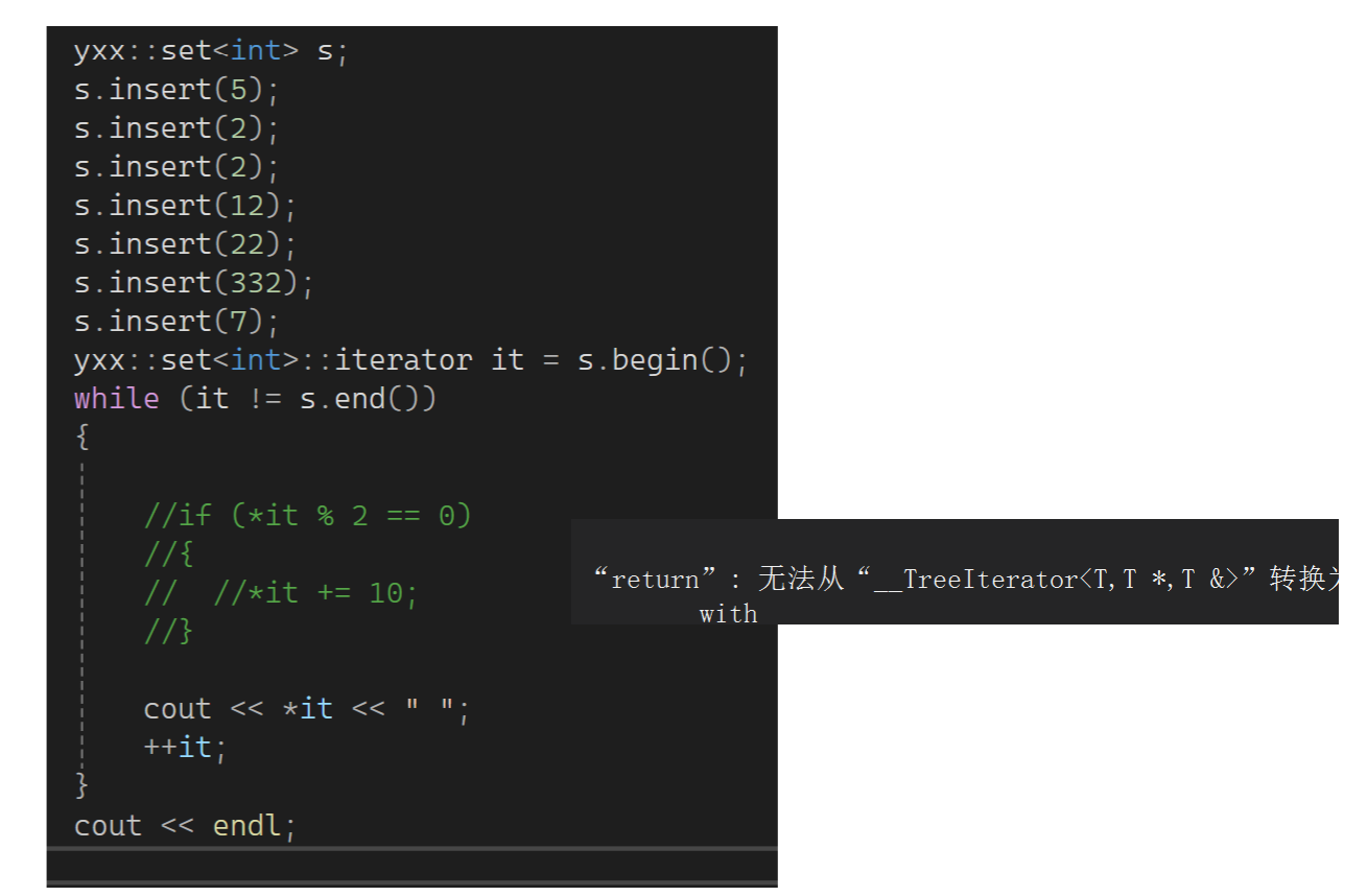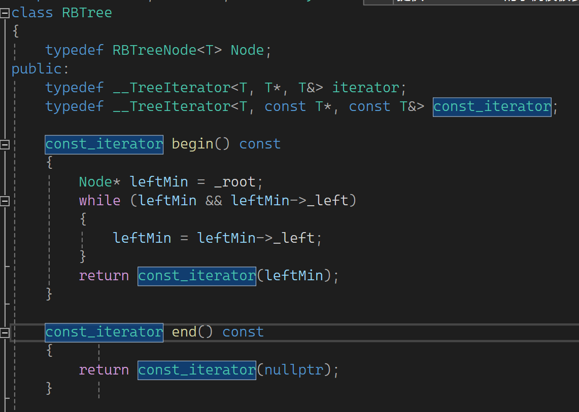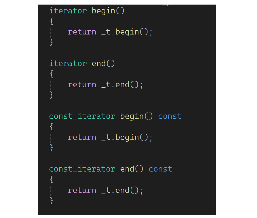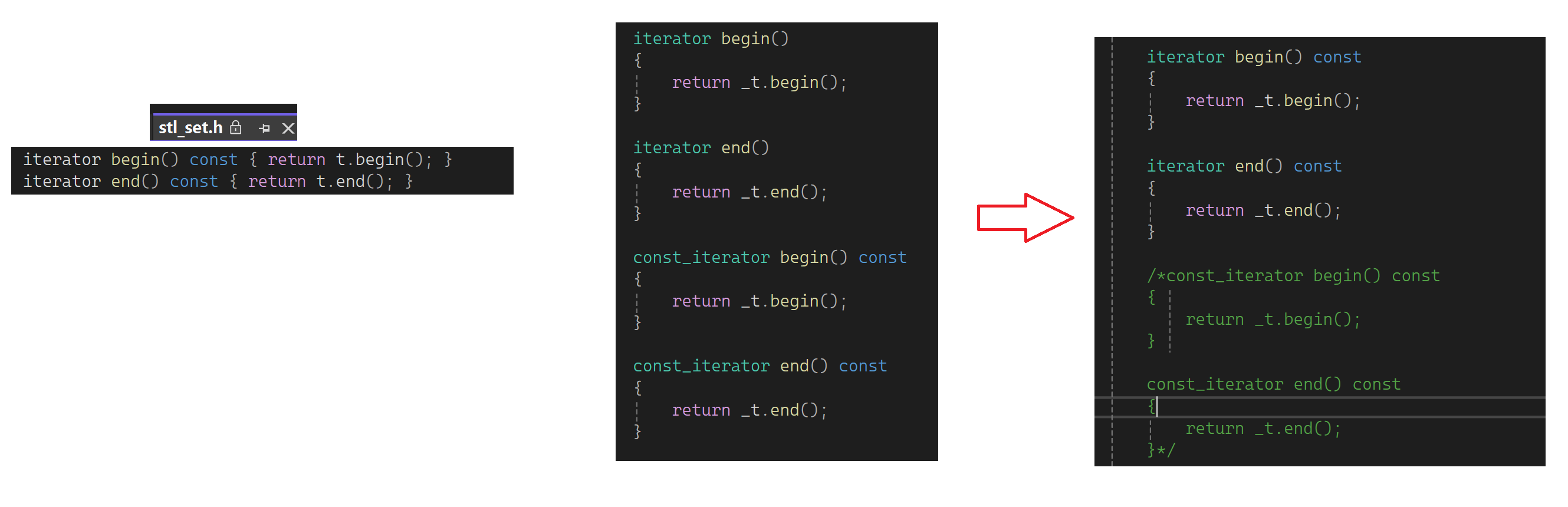 运行发现也可以,因为不加const,_t就是普的,普通的_t只能去调用begin,普通begin返回普通iterator,就不能匹配了。只提供const版本,反正不能修改,const对象可调用,普通对象也可以调用,这样set的const迭代器问题就解决了。