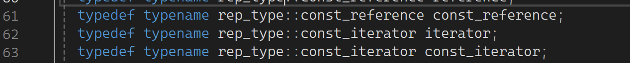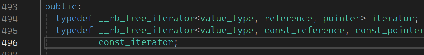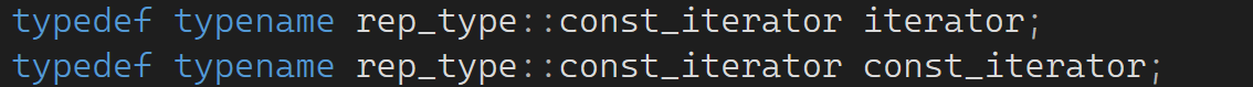 set里面是ret_type的迭代器,rep_type就是rb_tree,这里只是typedef了一下。再看下图:
