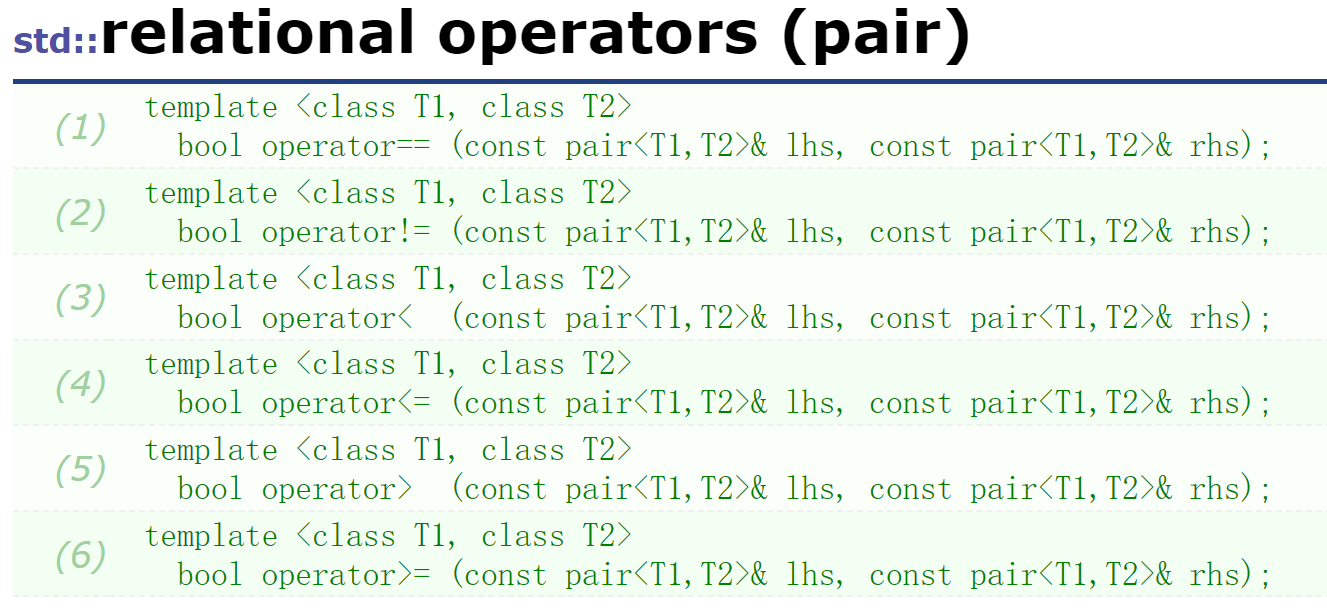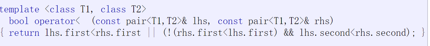 库里面重载了一些pair的比较,但这里的比较不是我们想要的比较方式,我们期望的是按照first去比较,但库里面不是。比如: