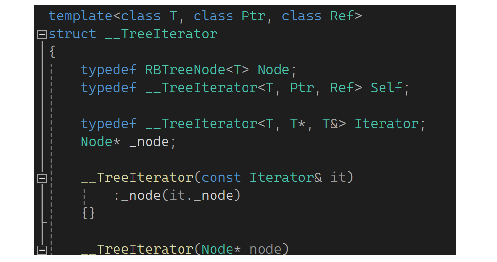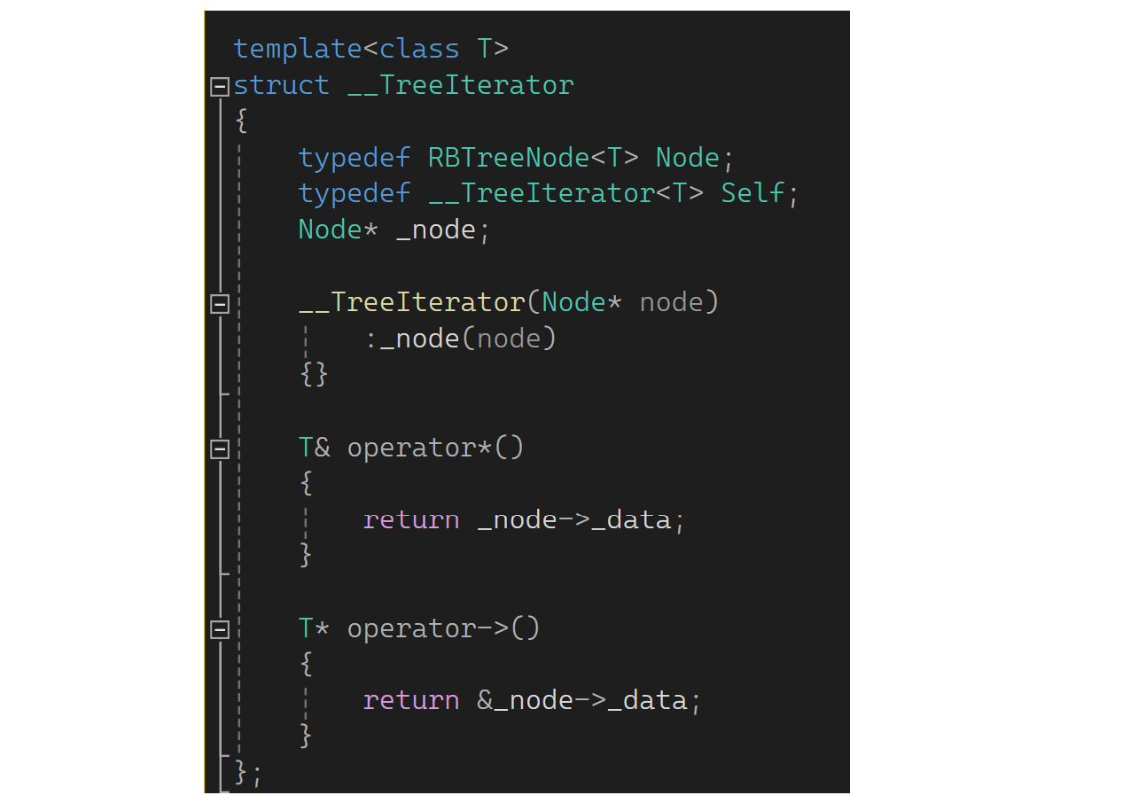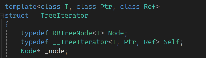 树里迭代器是个类,可以理解到这的正向迭代器和链表那的迭代器是很像的,是一个自定义类型。链表的自定义类型里封装的是结点的指针,那这里是什么呢?