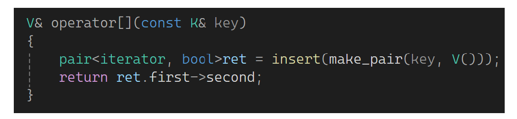 再补一下Map的[],这里先调inssert,里面插一个make_pair,first是k,values给个缺省值: