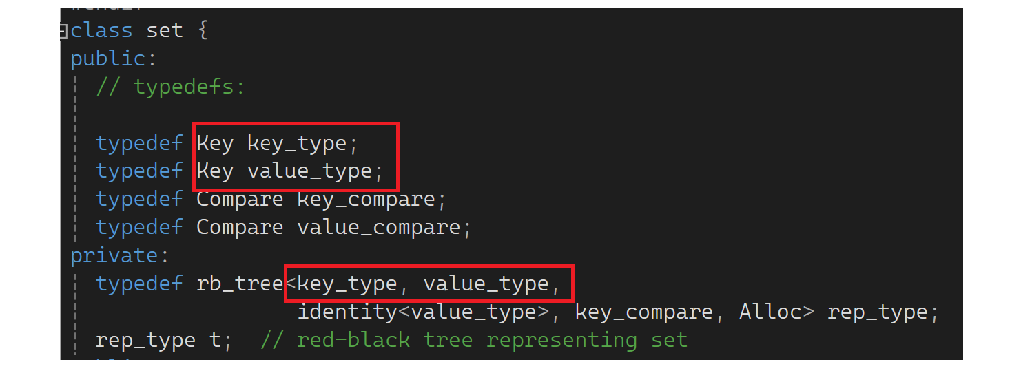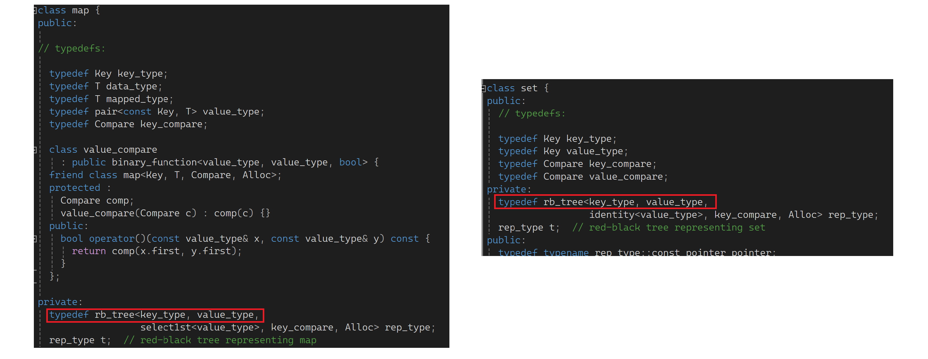 发现map的k是Key,v是pair;set的k是Key,v也是Key。