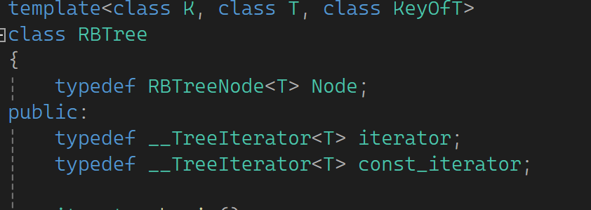 现在把刚才的框架照样子弄一个出来(复用前面RBTree.h,改成适合的样子),把V改为T,要不然有点取名混淆: