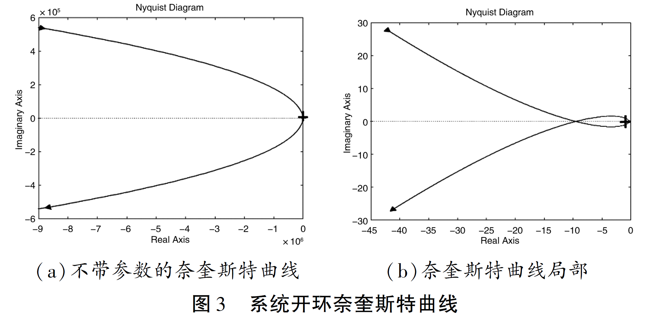 从式(2)可看出,系统的开环传递函数没有右极点、右零点以及延迟环节,属于最小相位系统。下面以这个系统为例,说明几何判据在系统稳定性分析中的应用情况。