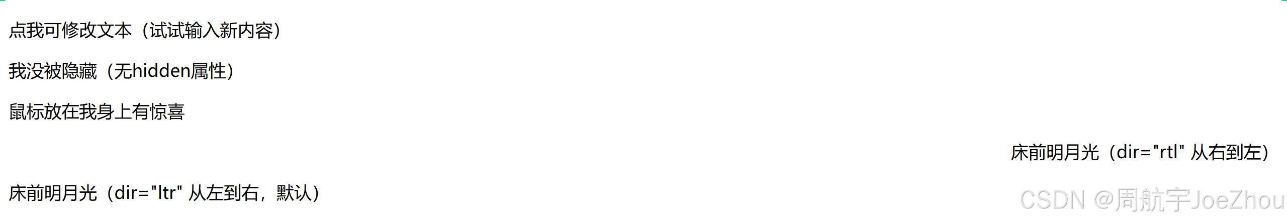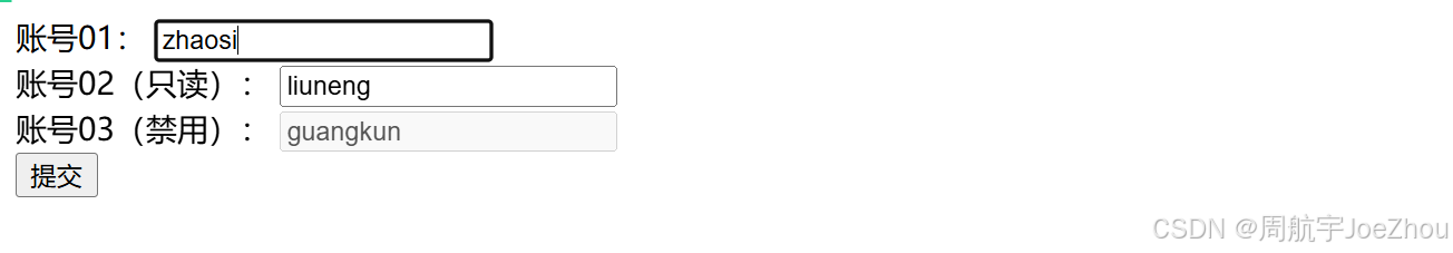 | readonly | 布尔值 | 只读文本域,不可编辑,提交时正常传递值 | 可聚焦,无禁用态,仅禁止输入 |