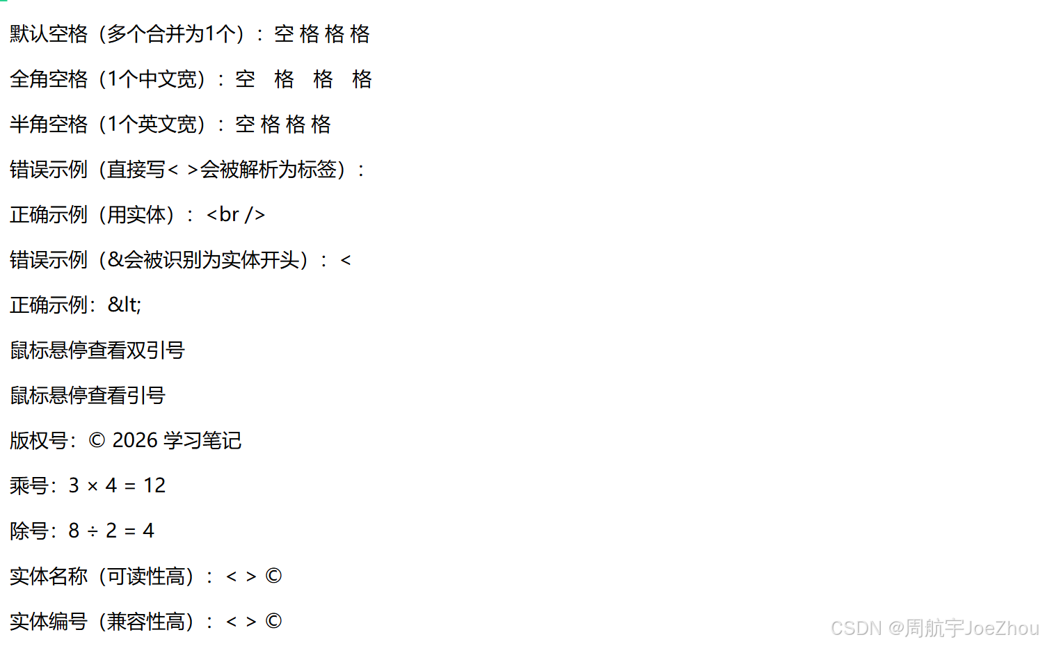 <input type="text">(单行文本框),文本域支持换行、回车、空格的原生保留,核心适配 "大段文本输入" 场景,如备注、留言、描述等。