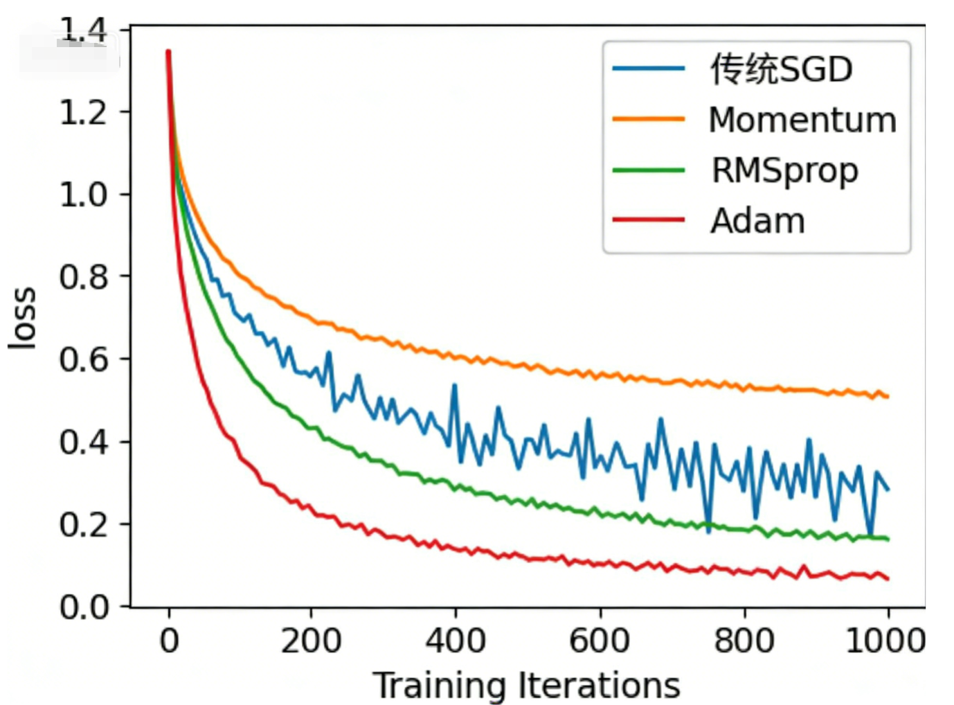 适用场景:梯度稀疏、波动大的场景(如自然语言处理的词嵌入训练、图像分割的边缘参数训练),比Momentum收敛更稳定。