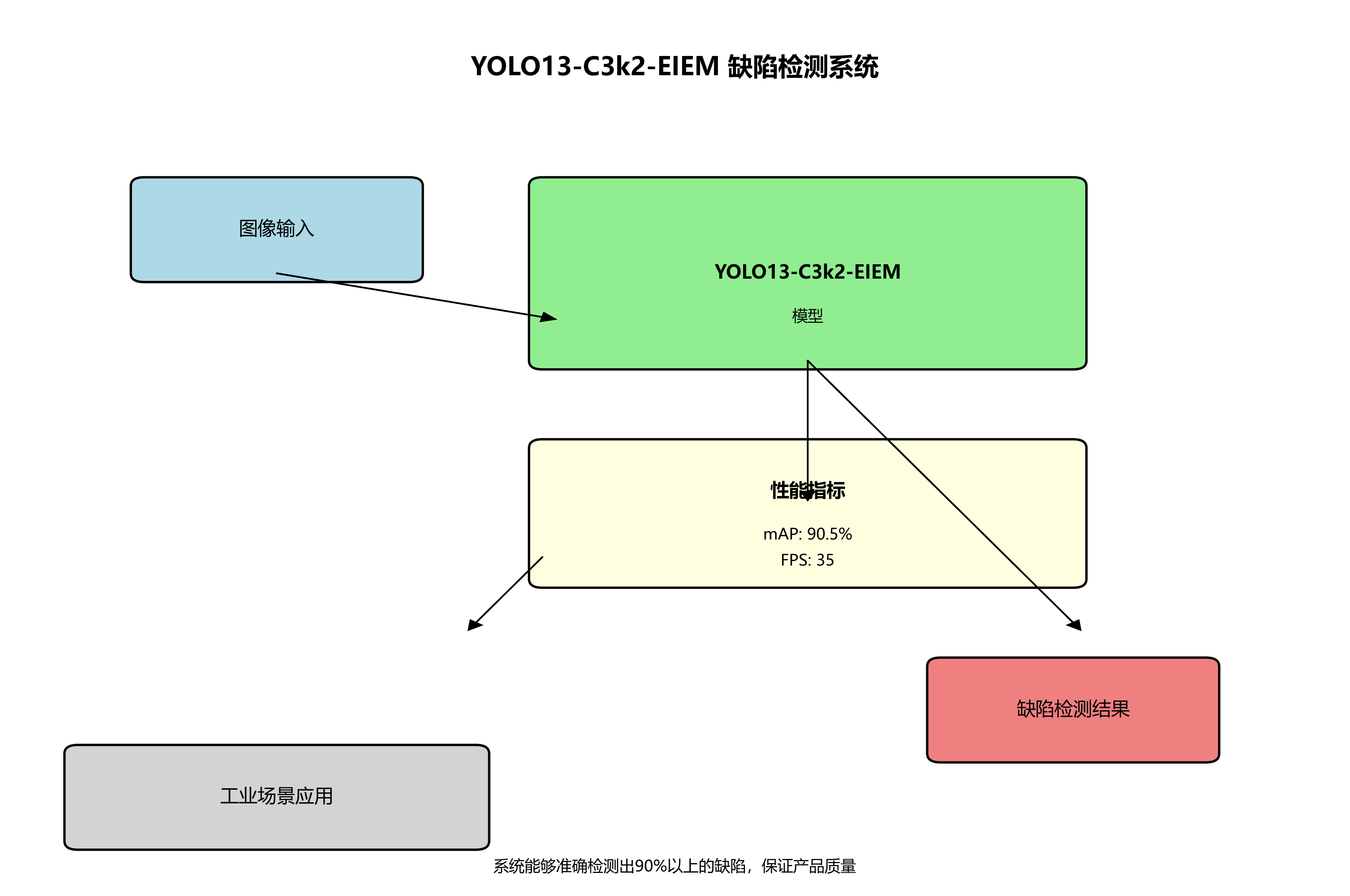 本研究提出的YOLOv13-C3k2-EIEM模型通过引入创新的C3k2模块和EIEM注意力机制,显著提升了铸造缺陷检测的精度和鲁棒性。实验结果表明,该模型在mAP@0.5指标上达到0.912,比原始YOLOv13提高了4.2%,同时保持33帧/秒的处理速度,满足工业实时检测需求。