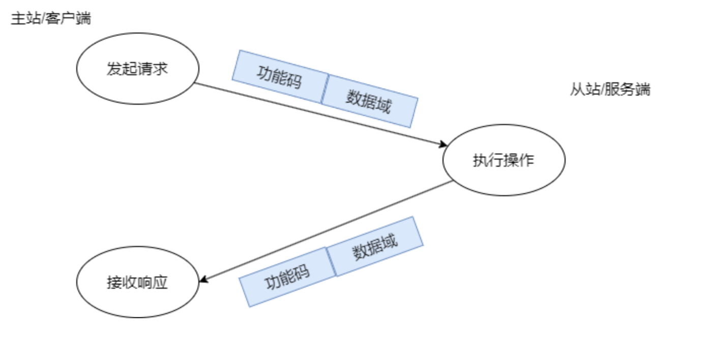 主站创建Modbus应用数据单元形成查询报文,其中功能码标识从机设备将要执行哪种操作。主机发送报文,从机设备接收报文,并根据功能码做出相应的动作,并将响应报文返回给主机设备。