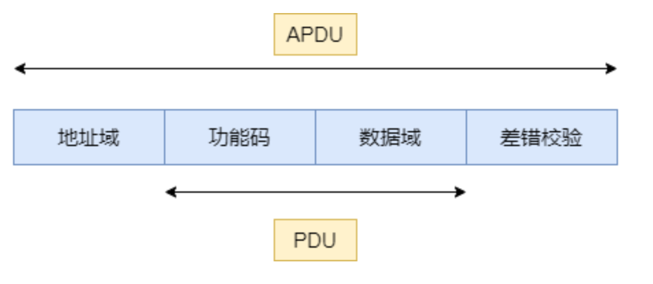 Modbus设计了一套简洁的通信格式,协议规定了PDU(protocol data unit)模型,即功能码+数据的格式。同时,为了适应多种传输模式,在PDU的基础上添加了必要的前缀(地址域)和后缀(差错校验)形成了ADU(application data uint)模型。