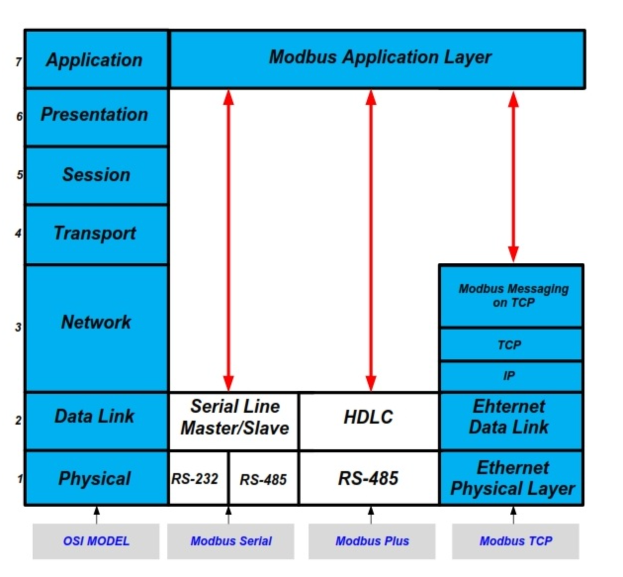 Modbus在OSI模型上: