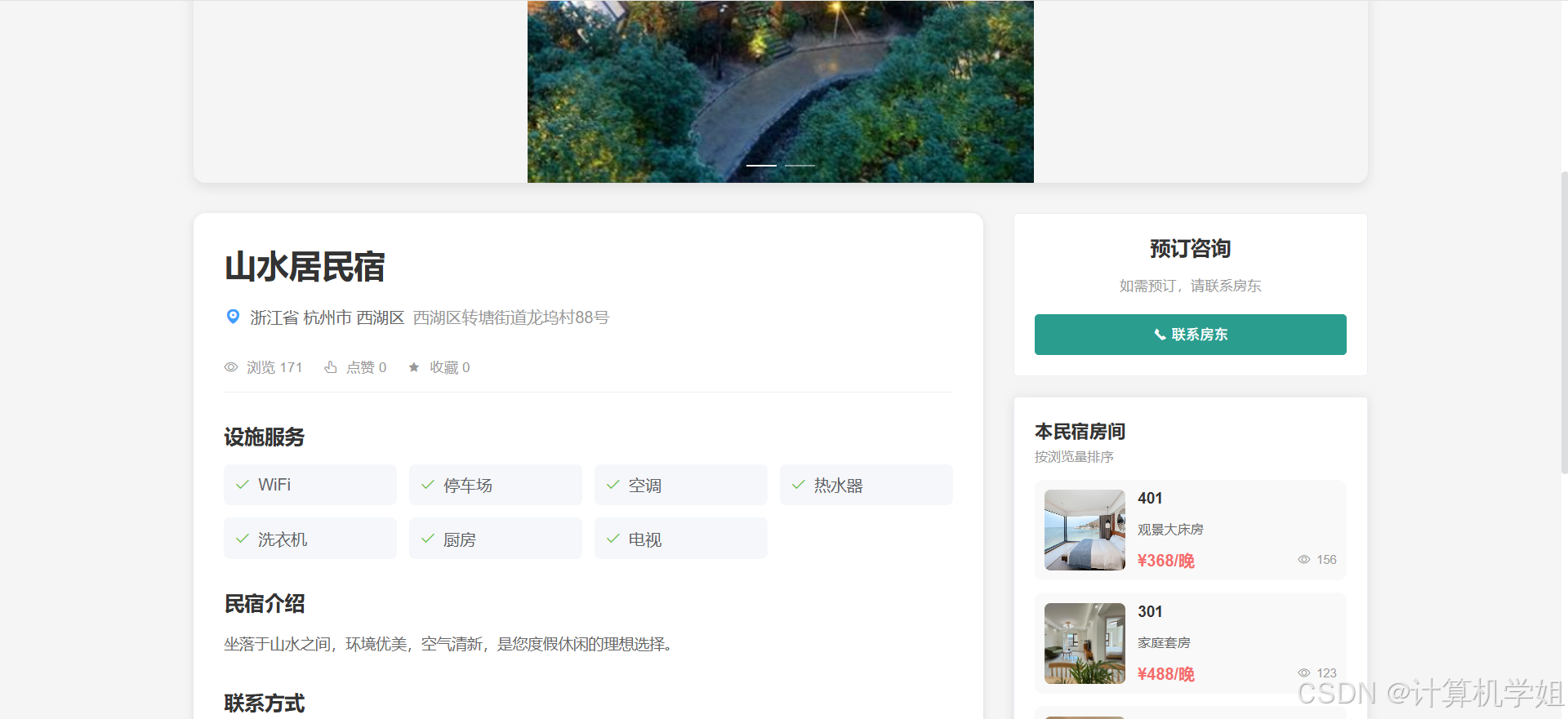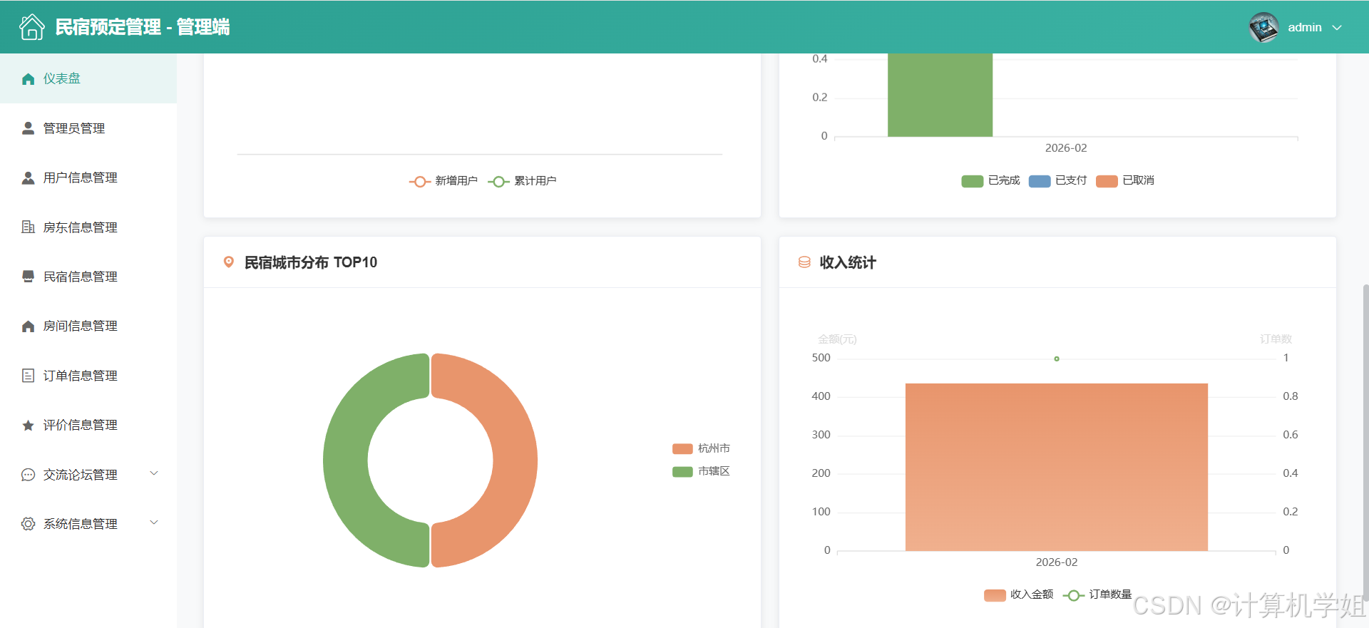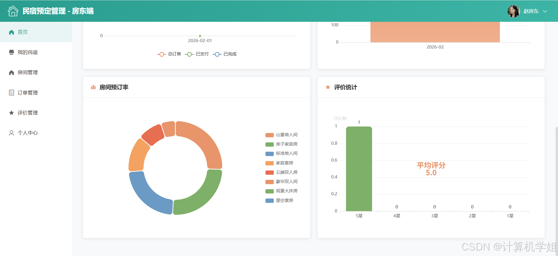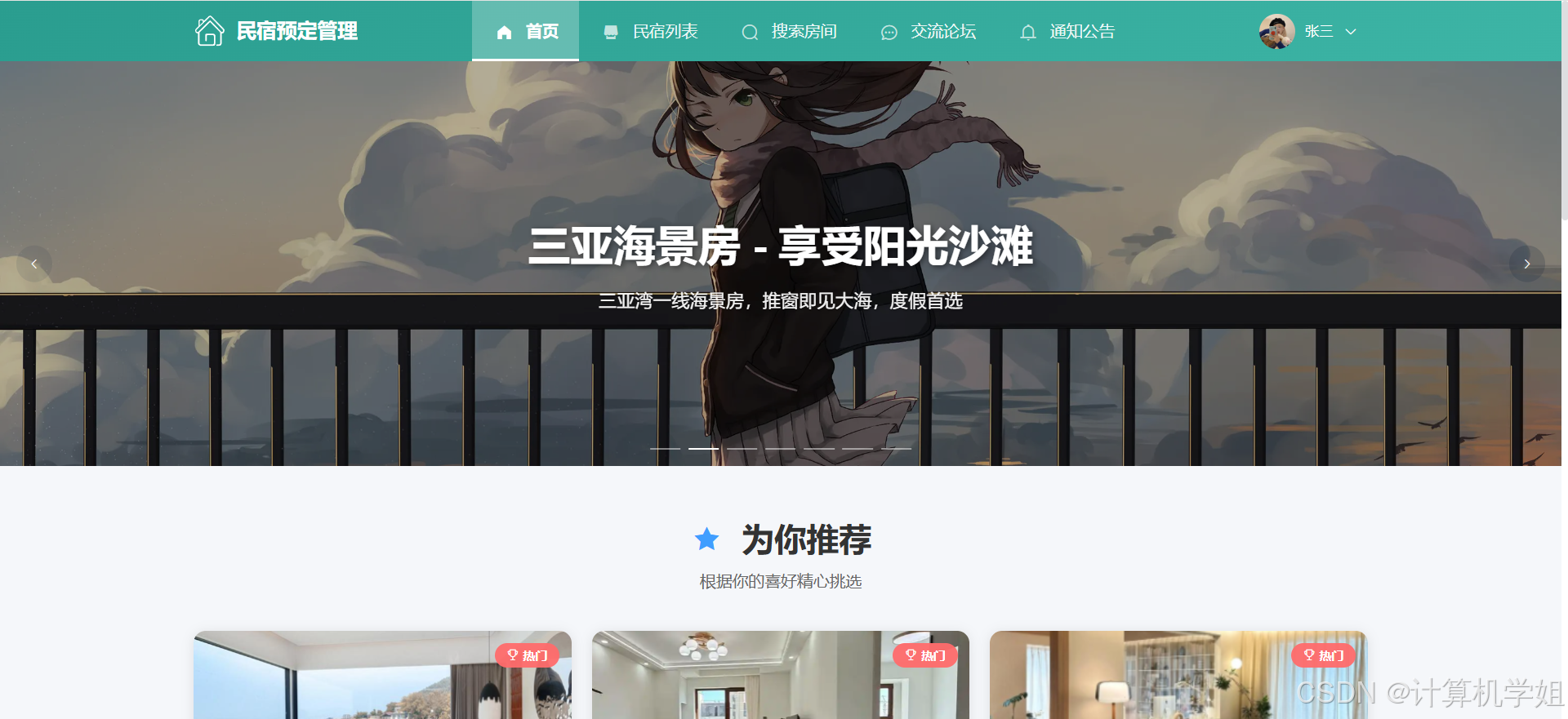 【2026最新】基于Java+SpringBoo+Vue+MySQL的民宿预定管理系统,三角色,个性化推荐算法,数据可视化统计,我的民宿,房间管理,订单管理,评价管理等
