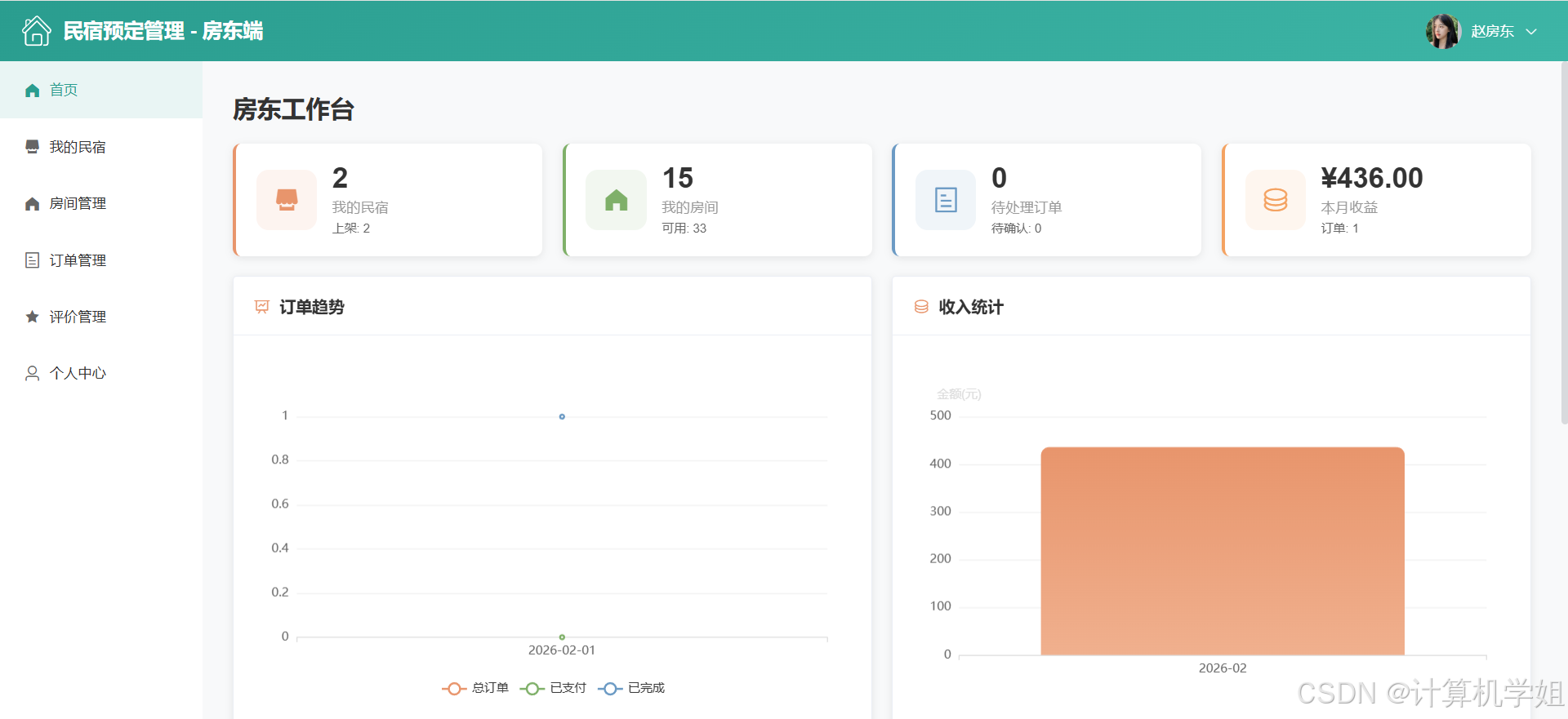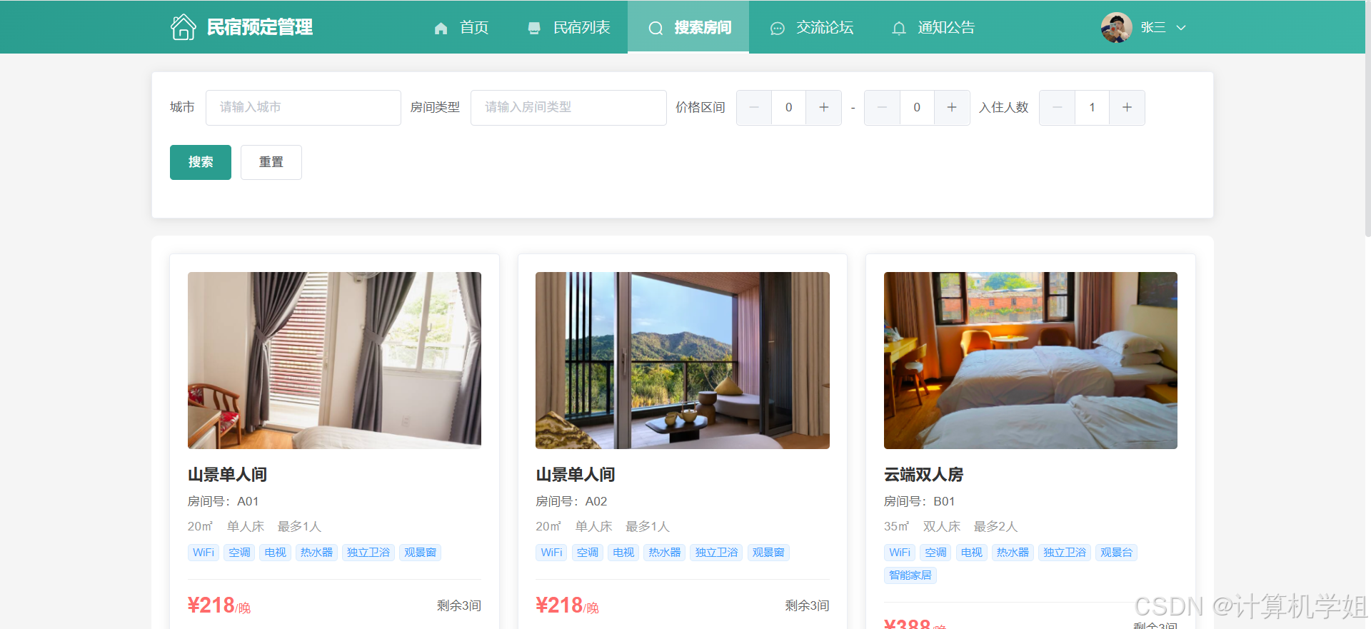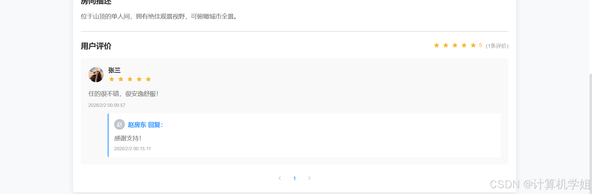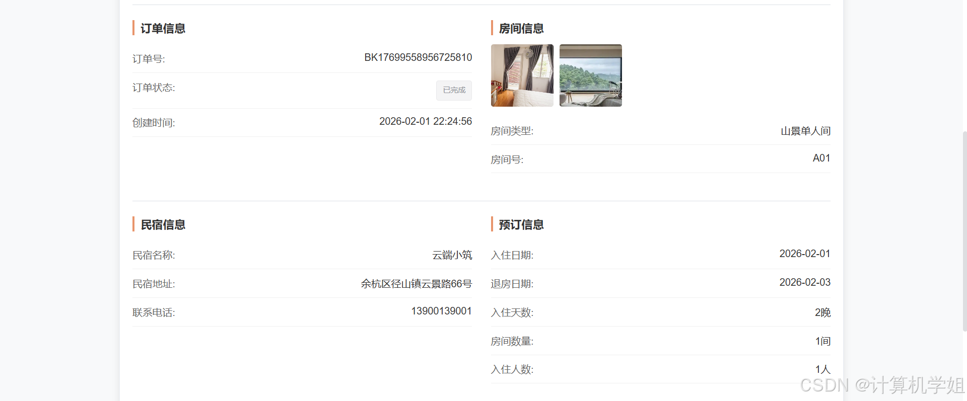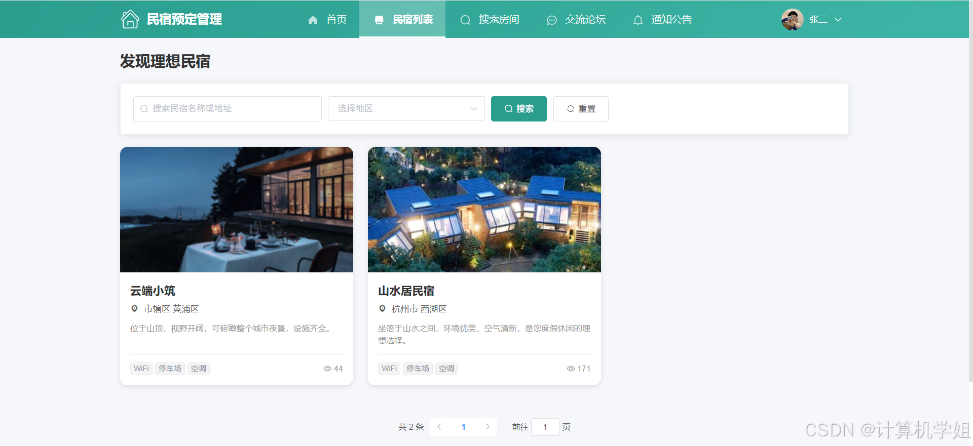 【2026最新】基于Java+SpringBoo+Vue+MySQL的民宿预定管理系统,三角色,个性化推荐算法,数据可视化统计,我的民宿,房间管理,订单管理,评价管理等