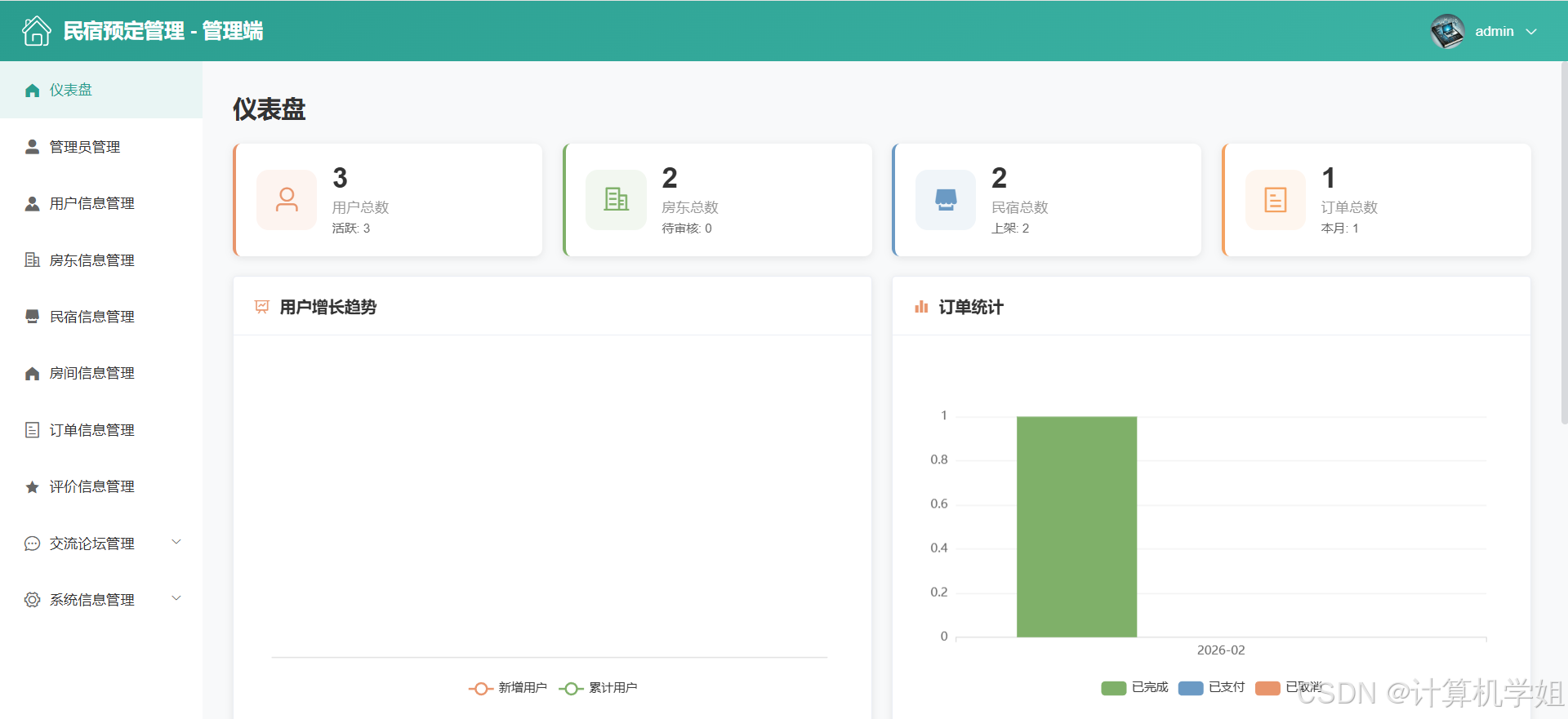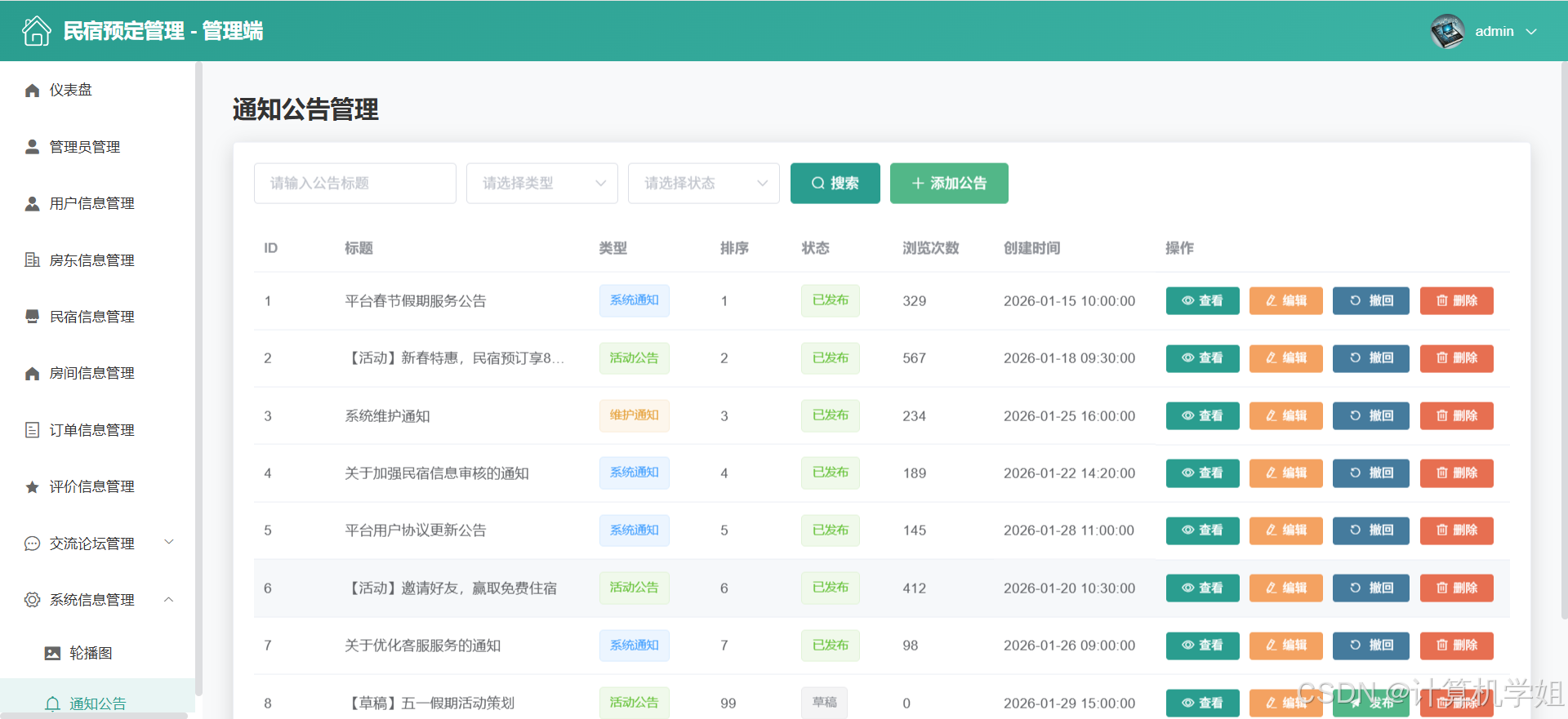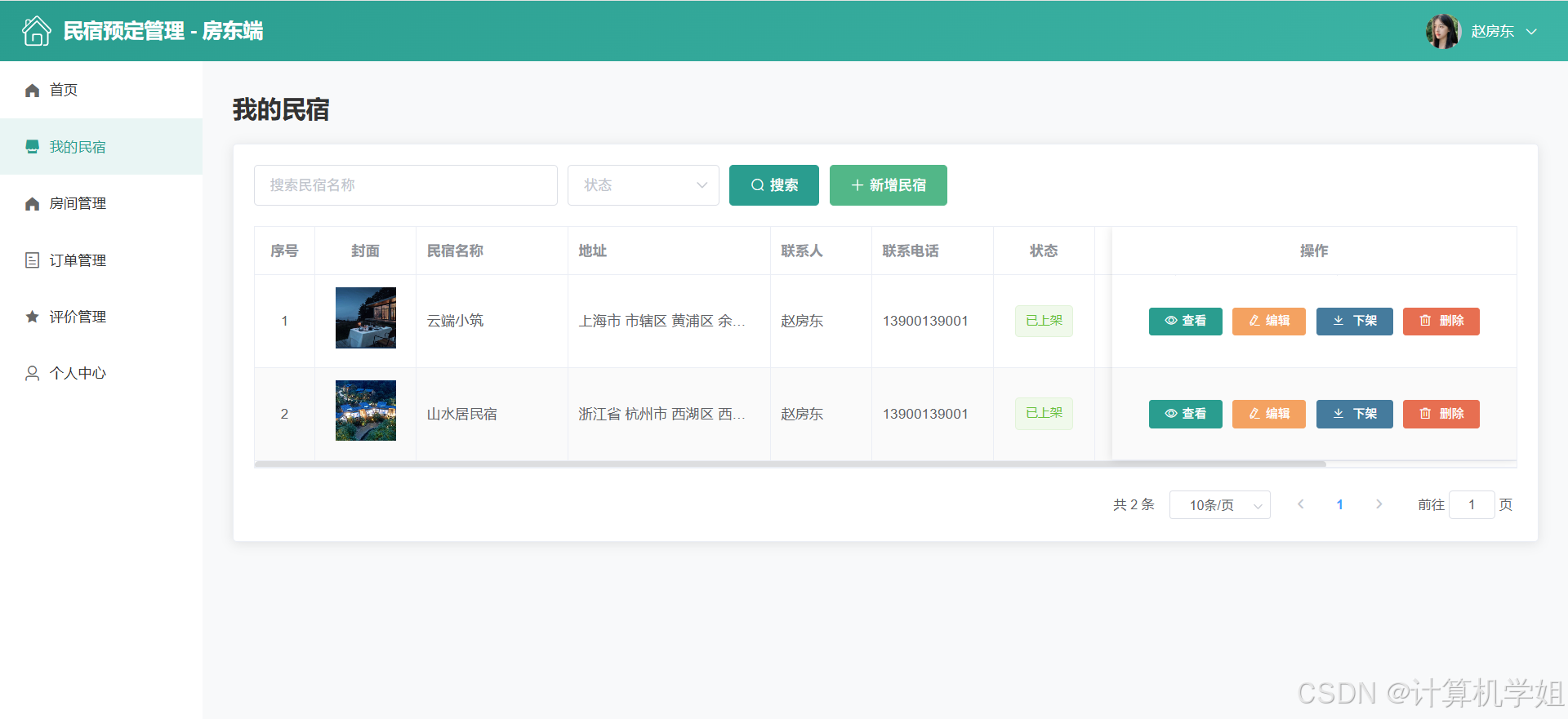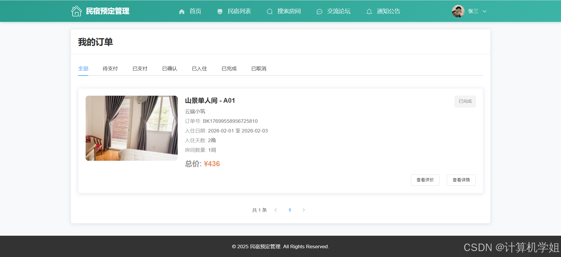 【2026最新】基于Java+SpringBoo+Vue+MySQL的民宿预定管理系统,三角色,个性化推荐算法,数据可视化统计,我的民宿,房间管理,订单管理,评价管理等