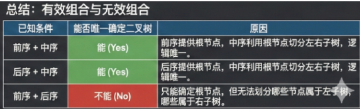 - 后序遍历:左子树 → 右子树 → 根节点。