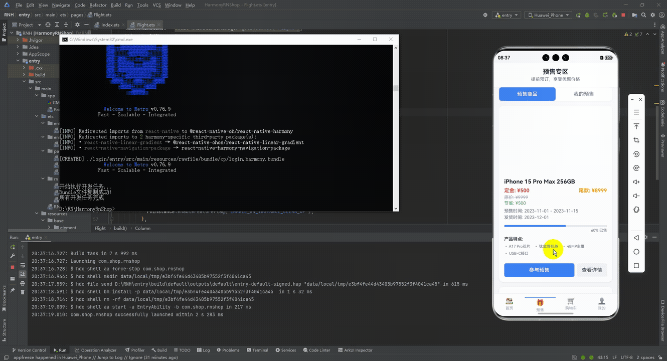 在电商应用中,预售模式是一种常见的营销手段,通过定金+尾款的方式提前锁定用户,同时帮助商家预测销量。本文将深入分析一个基于 React Native 实现的预售商品系统,探讨其架构设计、技术实现以及鸿蒙跨端适配策略。