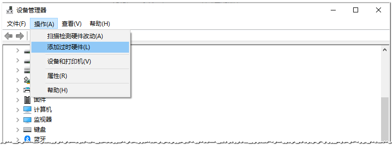 - 添加过时硬件:点击设备管理器顶部的「操作」→「添加过时硬件」;
