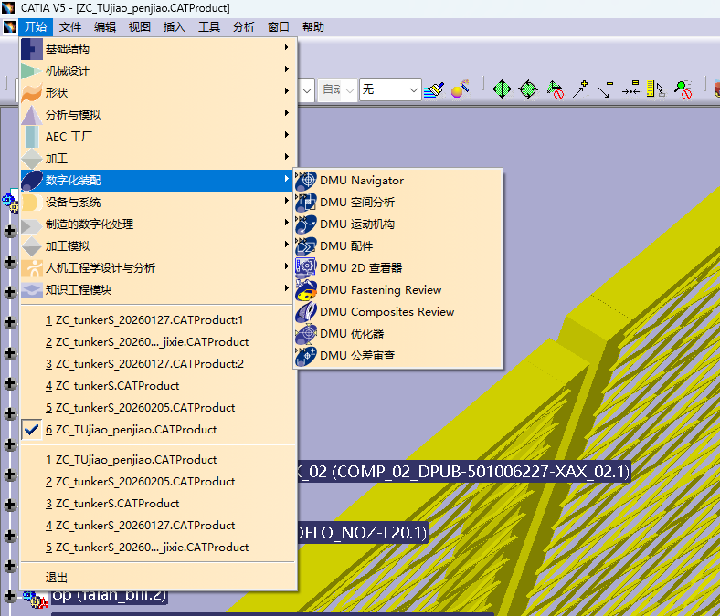在catia结构书中,必须将6个轴单独设置成part零件,并导入,如果6个轴的数模在catia的结构树中,是个集合 ,则无法完成dmu功能,stp的集合图形,各个部分如何拆分成单独的part零件,请自行研究