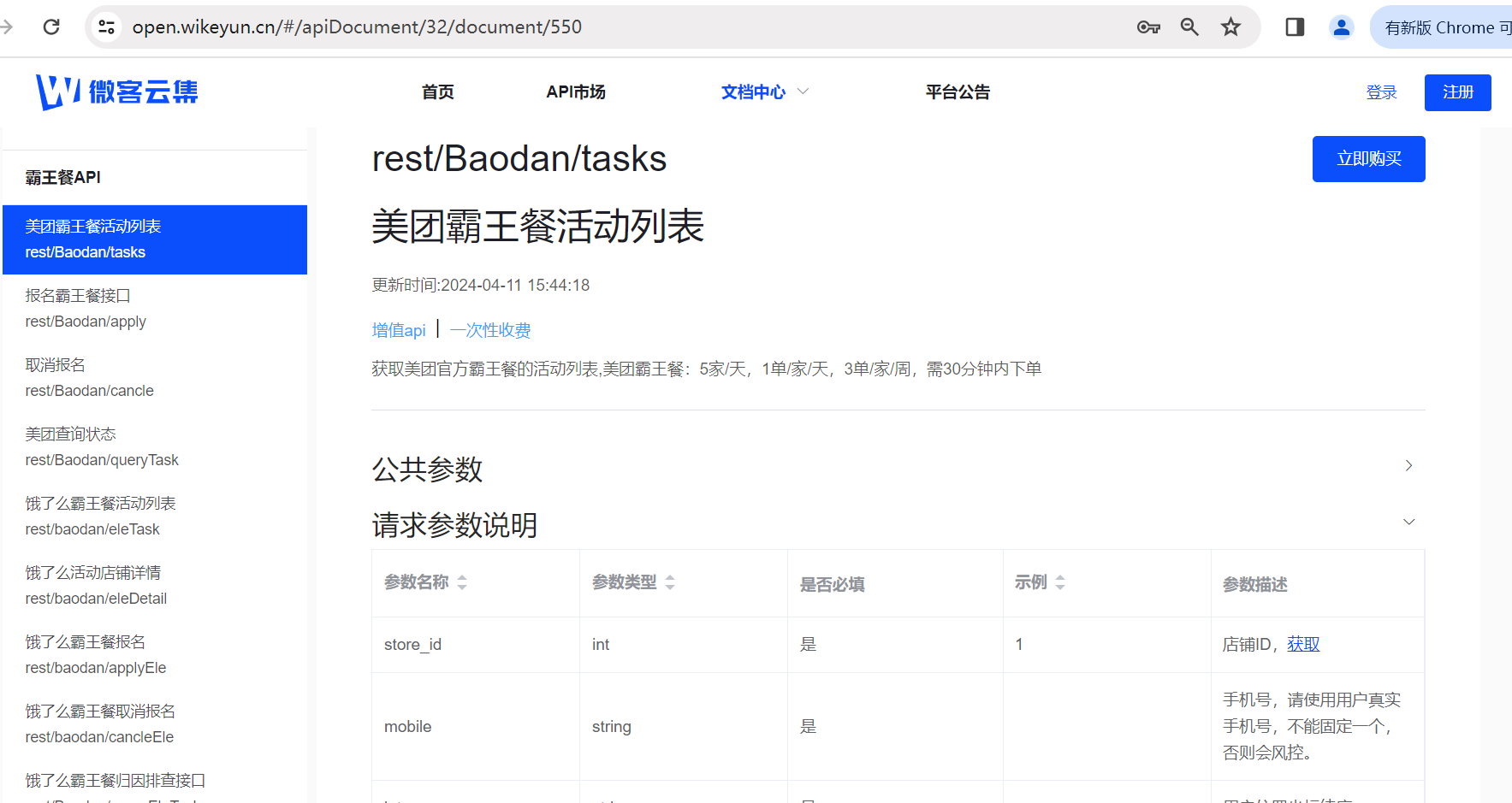- 下载官方霸王餐API文档,了解接口地址、请求参数、返回格式和调用限制