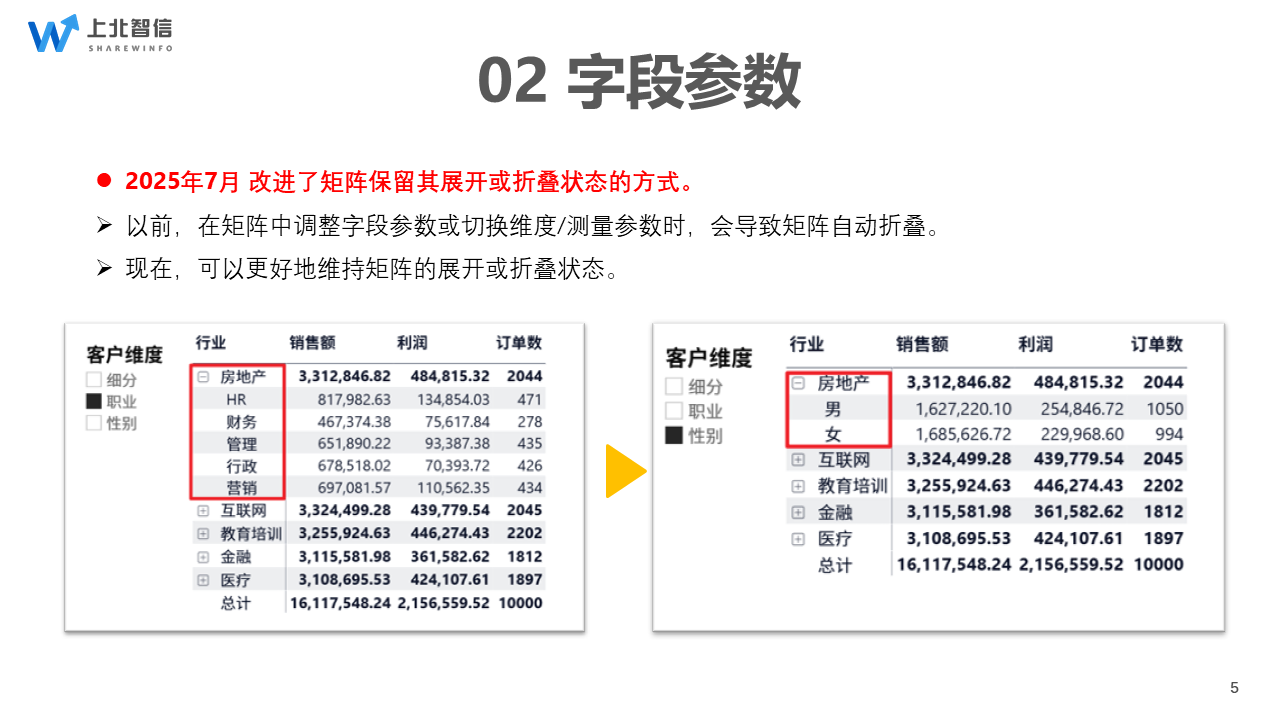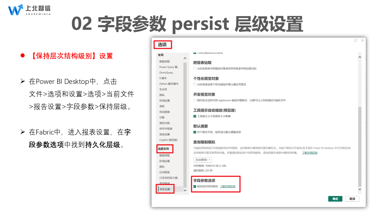 针对2025年7月矩阵维度切换的更新,本次新增【保持层次结构级别】开关,可在「文件>选项和设置>选项>当前文件>报告设置>字段参数选项」中进行勾选。