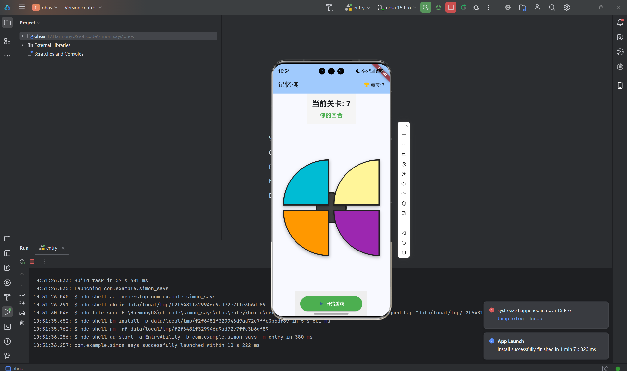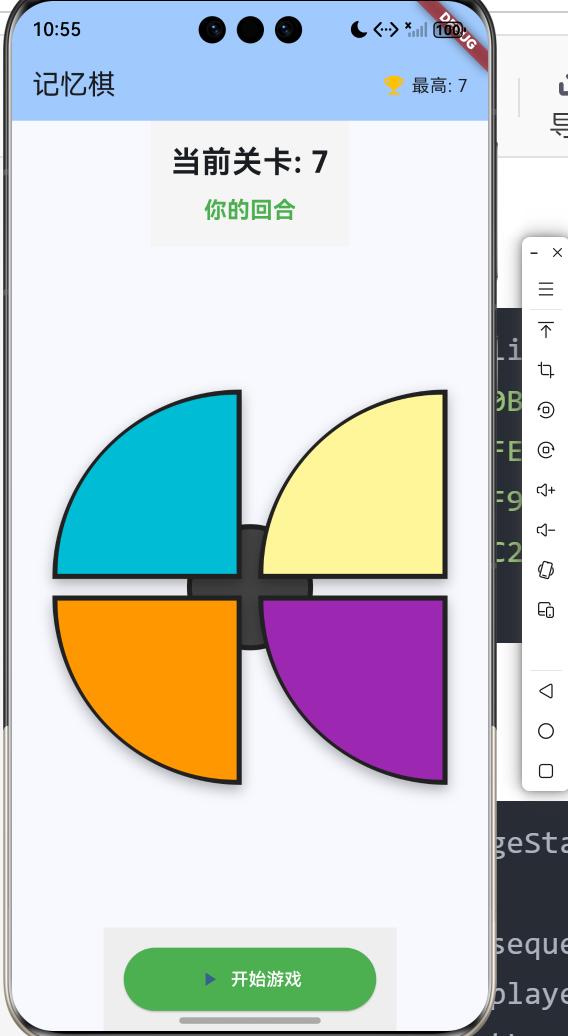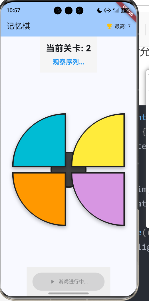 记忆棋(Simon Says)是一款经典的记忆力训练游戏,玩家需要记住并重复越来越长的颜色序列。本文将详细介绍如何使用Flutter for OpenHarmony框架开发一款功能完整的记忆棋游戏。文章涵盖了序列生成算法、定时器协调、音效模拟、按钮高亮等核心技术点。通过本文学习,读者将掌握Flutter在节奏类游戏开发中的完整流程,了解定时器协调和状态同步的应用。