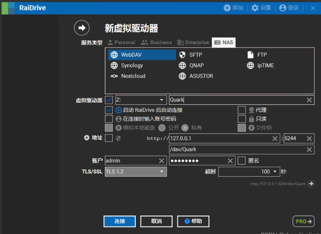 4. 使用RaiDrive将Quark网盘挂载到本地