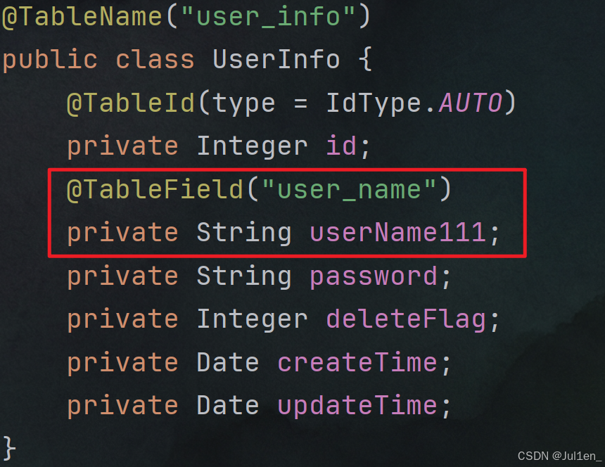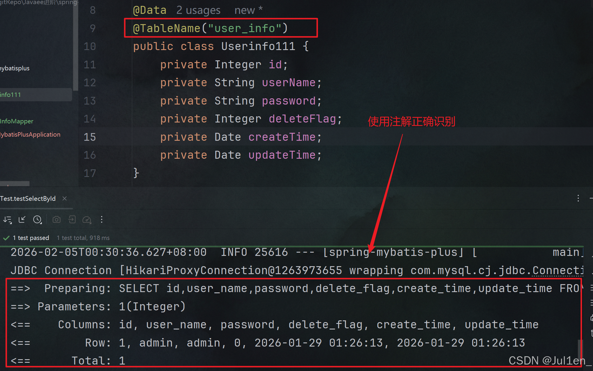 @Select("select id,username,password,age FROM userinfo WHERE username = #{userName}")