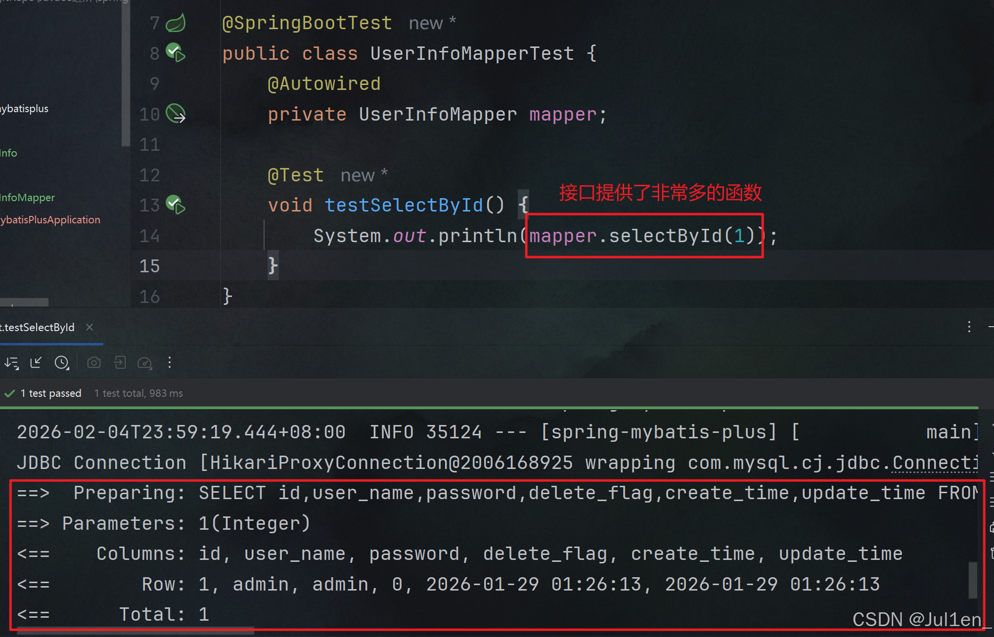 @Select("select id,username,password,age FROM userinfo ${ew.customSqlSegment}")