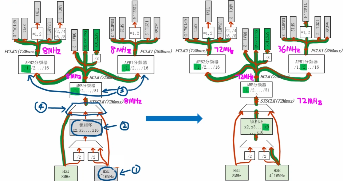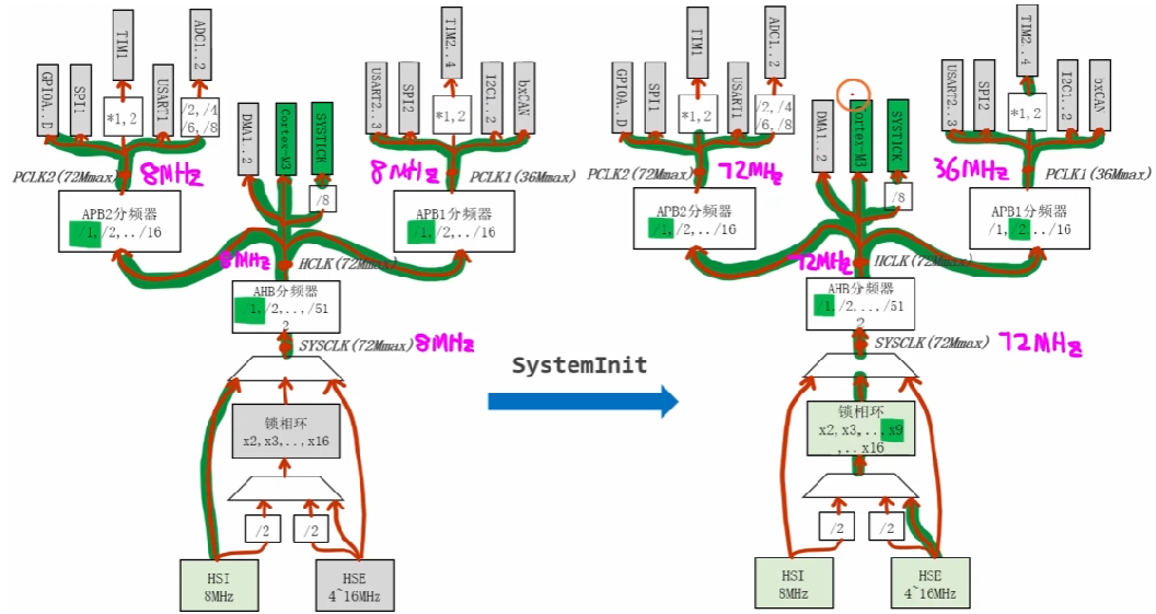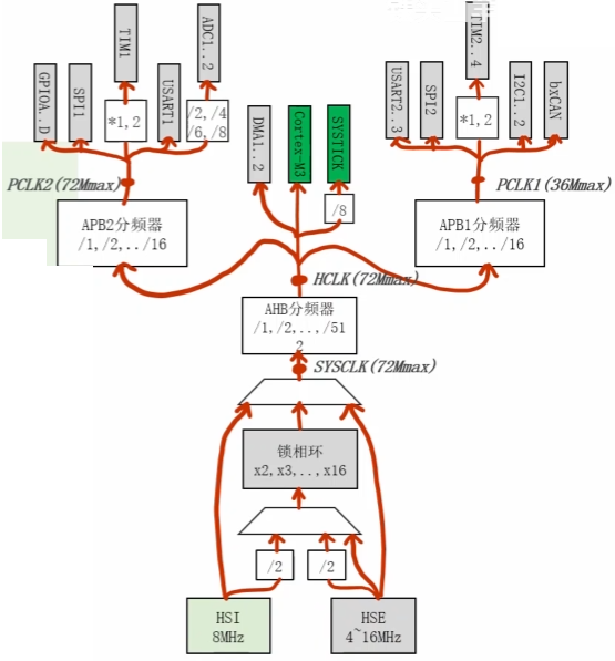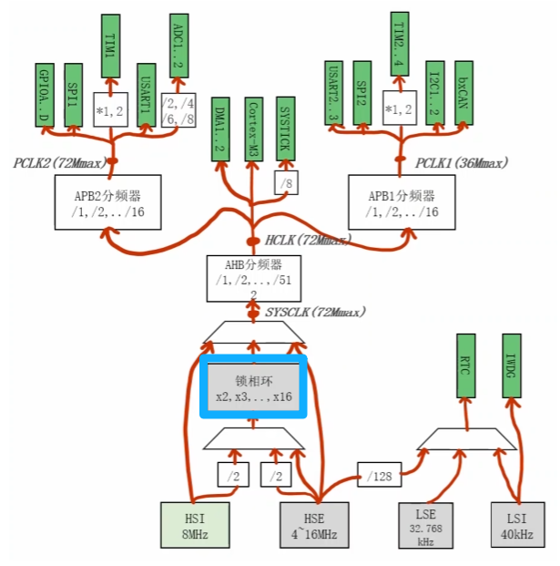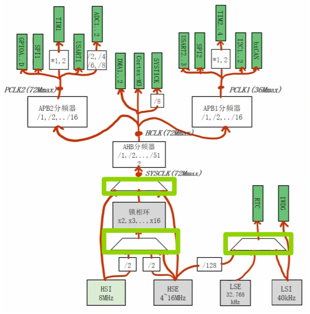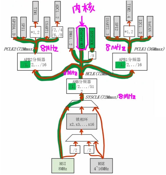 单片机中有两颗时钟树(类似于人体有两套血液循环系统)