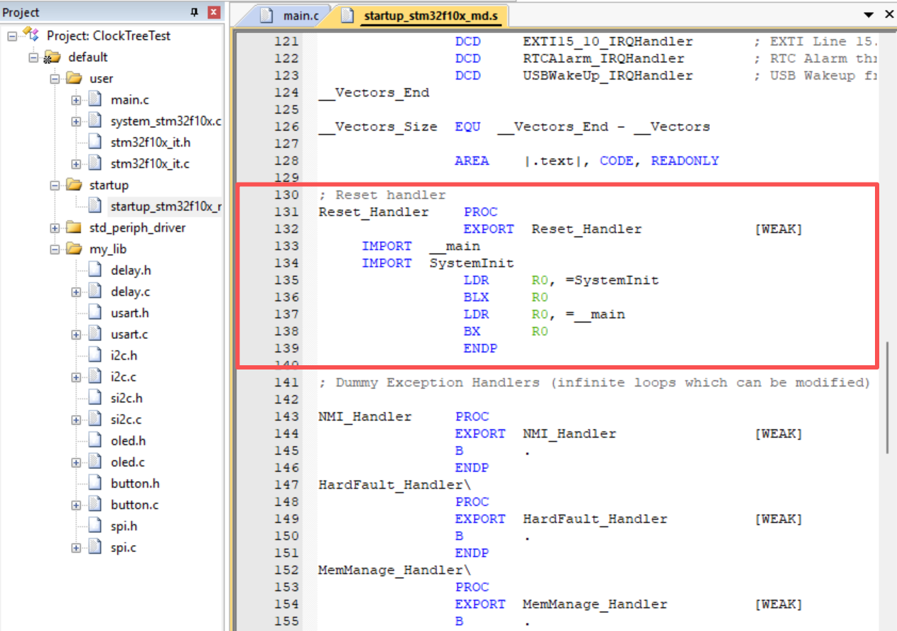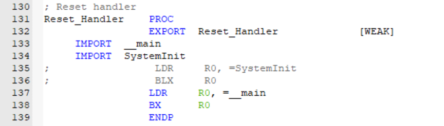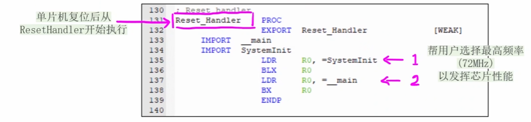 单片机复位后从ResetHandler开始执行