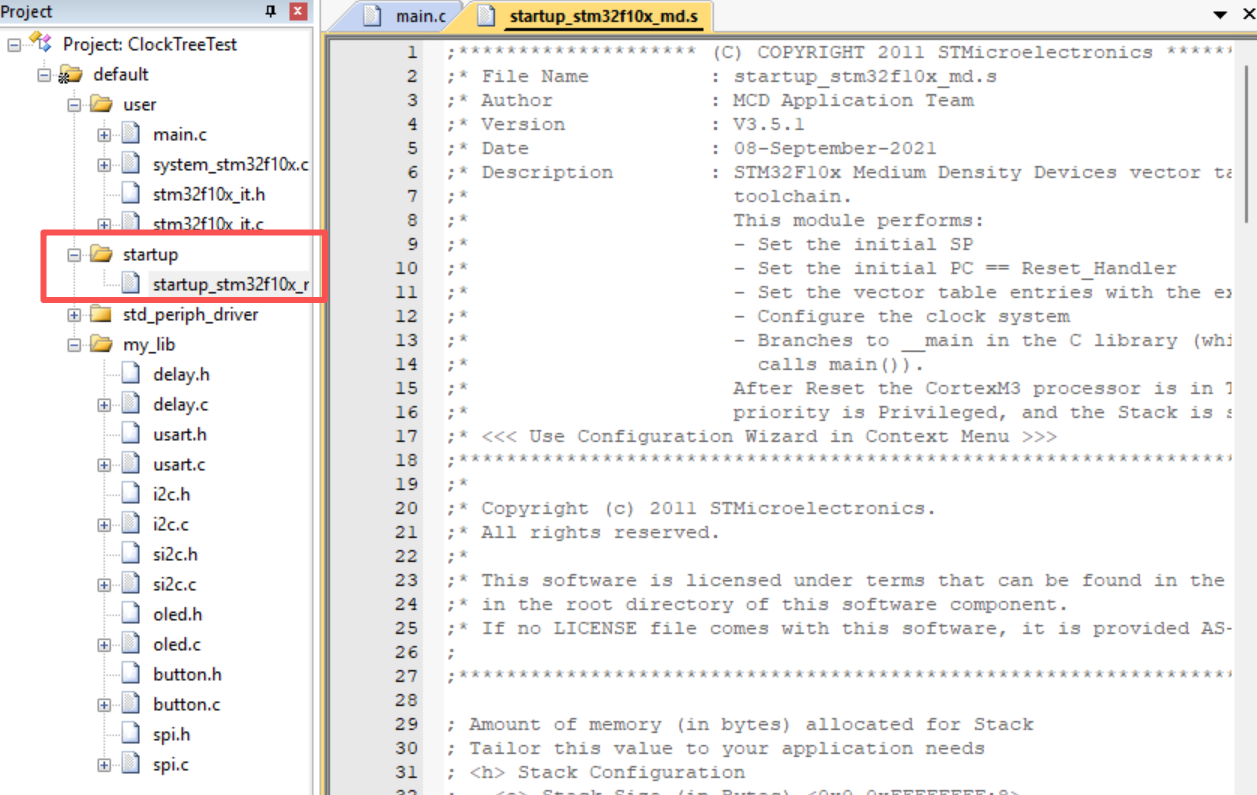 打开单片机的启动文件startup