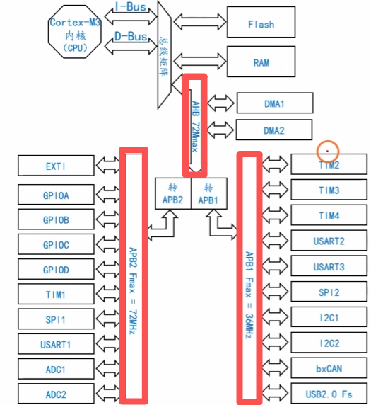 **APB1(Advanced Peripheral Bus 1):**高级外设总线1