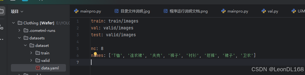将文件【datasets/dataset/data.yaml】中train,val,test数据集的路径改为自己项目数据集的路径,配置好对应的类别