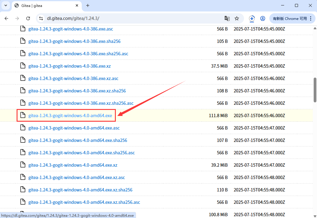 1,本教程操作环境为 Windows11 系统,首先访问 Gitea 的官方下载页面,根据你的 Windows 版本( 32 位或 64 位),下载最新版本的 Gitea 可执行文件,点此下载。