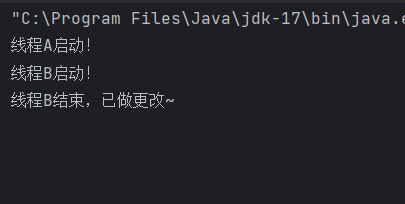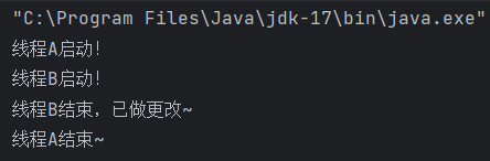 System.out.println("线程B结束,已做更改~");